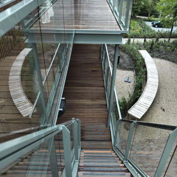 Galeriekonstruktion, Deckbretter/Deckteile und Fassaden aus Guariuba Holz hergestellt.