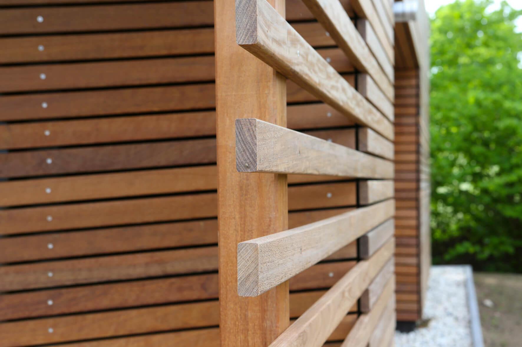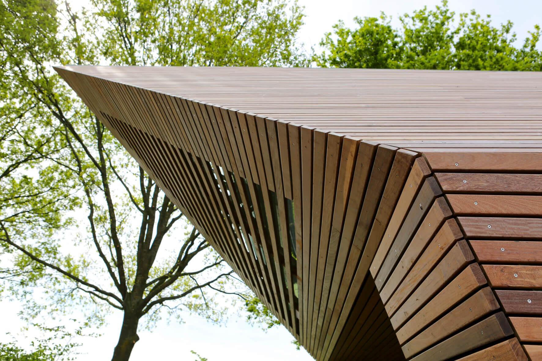 Das Dach sowie die Verkleidung bestehen aus FSC®-zertifiziert Ipé Holz.