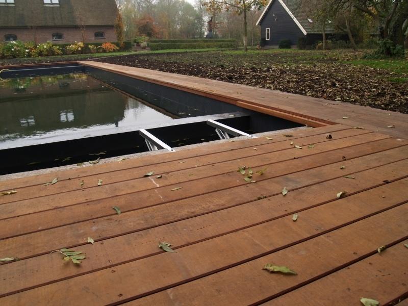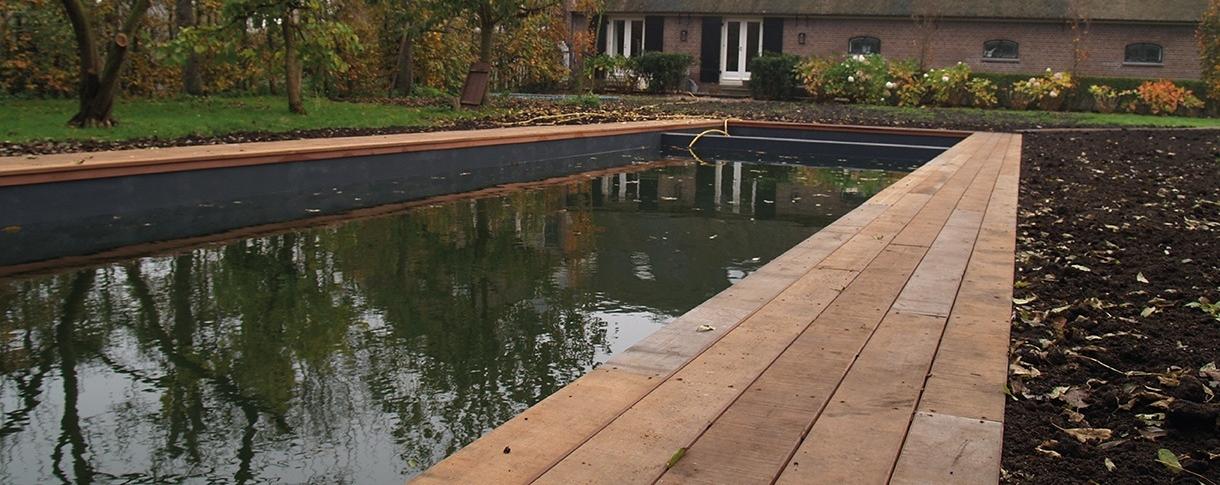 Projekt für die Holzpflasterung rund um einen Teich, mit Massaranduba Hartholz.
