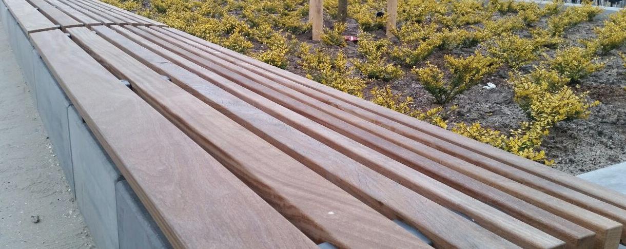 Eine Reihe von Hartholzarten sind übrigens wie gemacht für Stadtmöbel aus Hartholz, dazu gehören auf jeden Fall Cumaru und Okan. Eine gute Verarbeitung und eine Haltbarkeit sind dabei wichtige gute Argumente. Eine Bank sollte an der Oberfläche glatt sein, um maximalen Sitzkomfort zu bieten. Darüber hinaus ist die Nachhaltigkeit ein wichtiges Kriterium. Eine Kommune möchte ihr Stadtmobiliar verständlicherweise so wenig wie möglich warten müssen. Hartholz in der höchsten Haltbarkeitsklasse hält übrigens mehr als 25 Jahre. Erfahren Sie hier mehr über Straßenmöbel aus Holz.