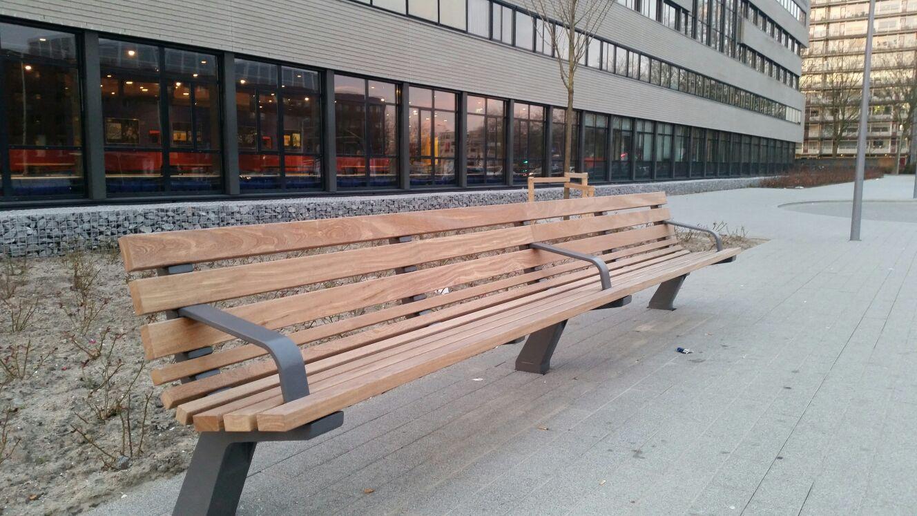 Die Stadt Rotterdam beabsichtigte, verantwortungsbewusste Sitzmöbel im öffentlichen Raum zu schaffen. Praktische, schöne und nachhaltige Stadtmöbel sollten Passanten Gelegenheit zum Sitzen bieten. Dabei werden hohe Anforderungen an die Lebensdauer von Stadtmöbeln gestellt. Nachhaltigkeit, das ist es, woran Van den Berg Hardhout täglich arbeitet. Alle unsere Harthölzer sind FSC®-zertifiziert. Auf diese Weise tragen wir zu einer verantwortungsvollen Waldbewirtschaftung bei. Wir haben FSC® Cumaru-Holz für eine Vielzahl an Bänken in die umtriebige Hafenstadt Rotterdam geliefert.