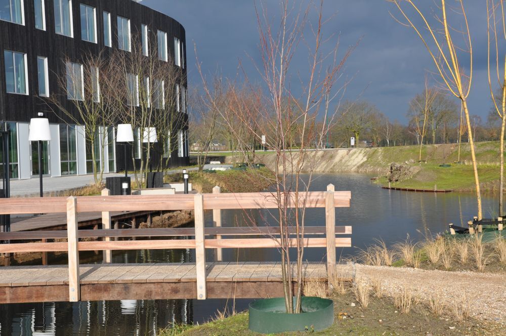 On the right, you can see a number of photos of beautiful hardwood bridges projects for which we have been able to supply the wood. Van den Berg Hardhout supplies the hardwood to measure and, if desired, pre-fabricated for quick installation. In collaboration with specialists, or with your own contractor, we strive to make every project a success. A good example of a successful project is the Nicolaasbrug in Zoetermeer. This wooden bridge of Cumaru provides a nice connection between the city centre and the Old Village. Want to see more examples of sustainable wooden walkways? Van den Berg Hardhout supplied FSC® certified Piquia wood for the wooden walkway at the Venco Campus.