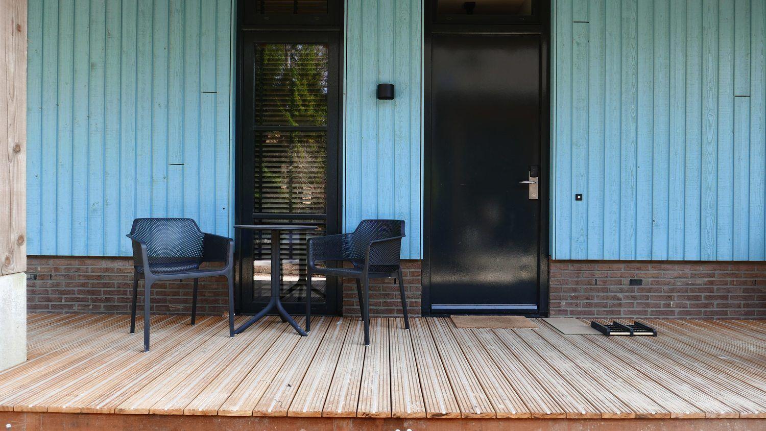 In 2020, the outdoor area of the hotel was overhauled. Our partner VIC Landscapes was called in to build the veranda of the lodges. The great thing about VIC Landscapes is their strong believe in all things eco-friendly. They give trees and shrubs in gardens and courtyards an actual real function. In the end, the choice was made to use FSC® certified Bilinga for the decking parts. Bilinga wood comes from Western Africa and is largely similar to Bankirai. A different type of wood was chosen for the construction; 100% is FSC® certified Angelim vermelho. With these two beautiful, very strong types of wood (class 1), our partner created a veranda on which guests of Boutique Hotel Beekhuizen can sit comfortably and enjoy nature.