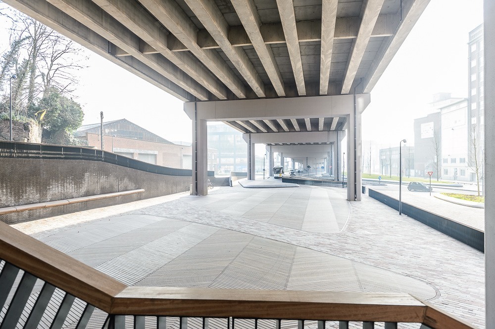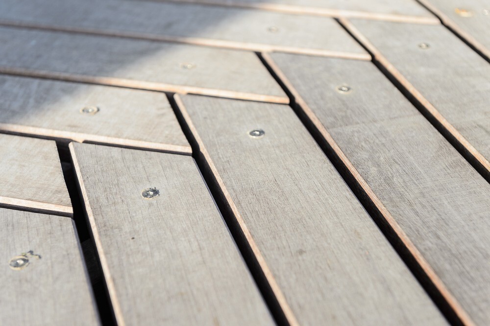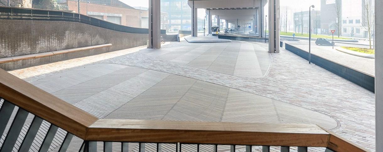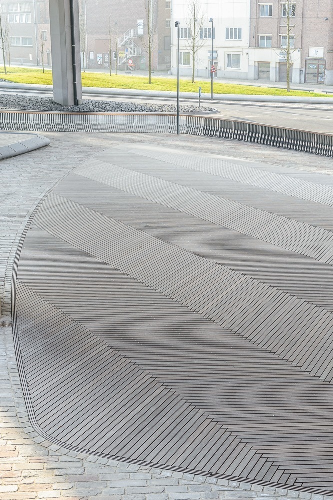 A beautifully landscaped decking on the English Square in Leuven, Belgium. With FSC® Massaranduba hardwood.