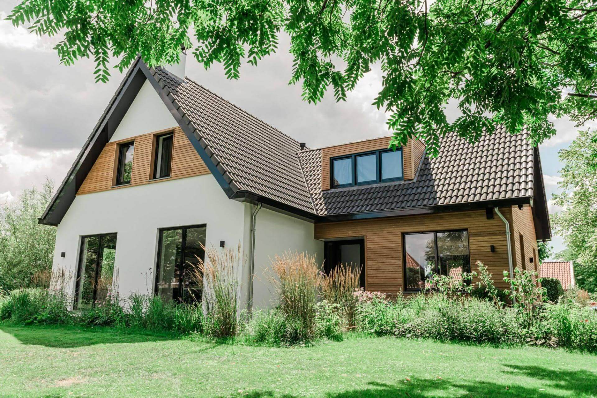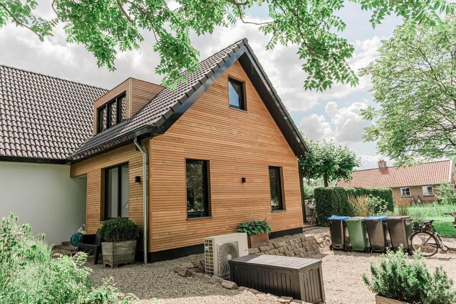 A house to be envious of! The new residents of this spacious house renovated the entire structure from top to bottom when they bought it. During the renovation, a beautiful design and technical choices created a beautiful and sustainable result. To create a warm appearance, wood was chosen for exterior decoration. Wood is also a nice counterpart to 'harder materials' such as the stucco on the walls and the black steel gutters and window frames.