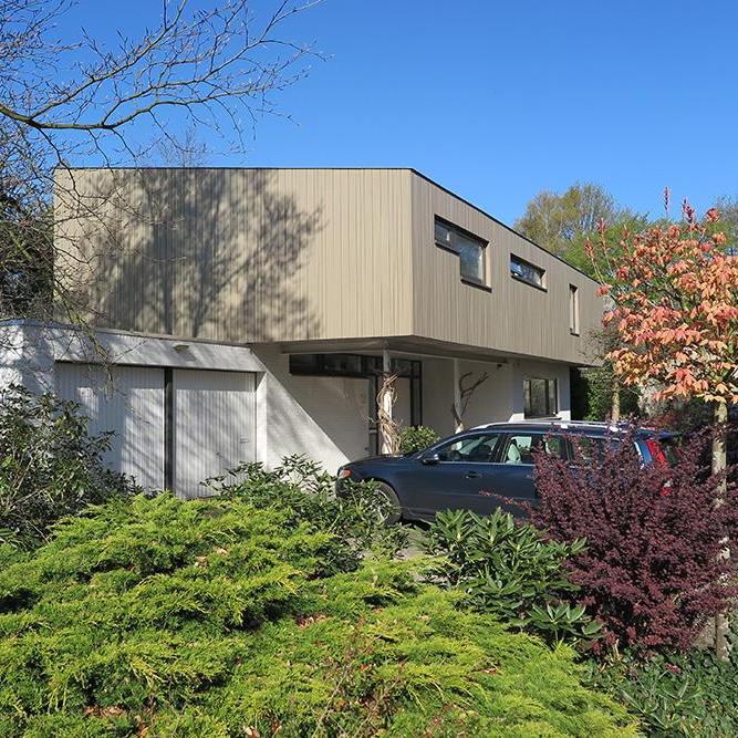 A very special, painted wooden cladding on a facade with sustainable FSC® Basralocus hardwood.