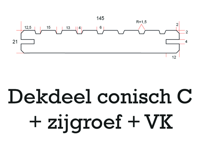 Conisch dekdeel C 21x145 + VK + zijgroef Nr: