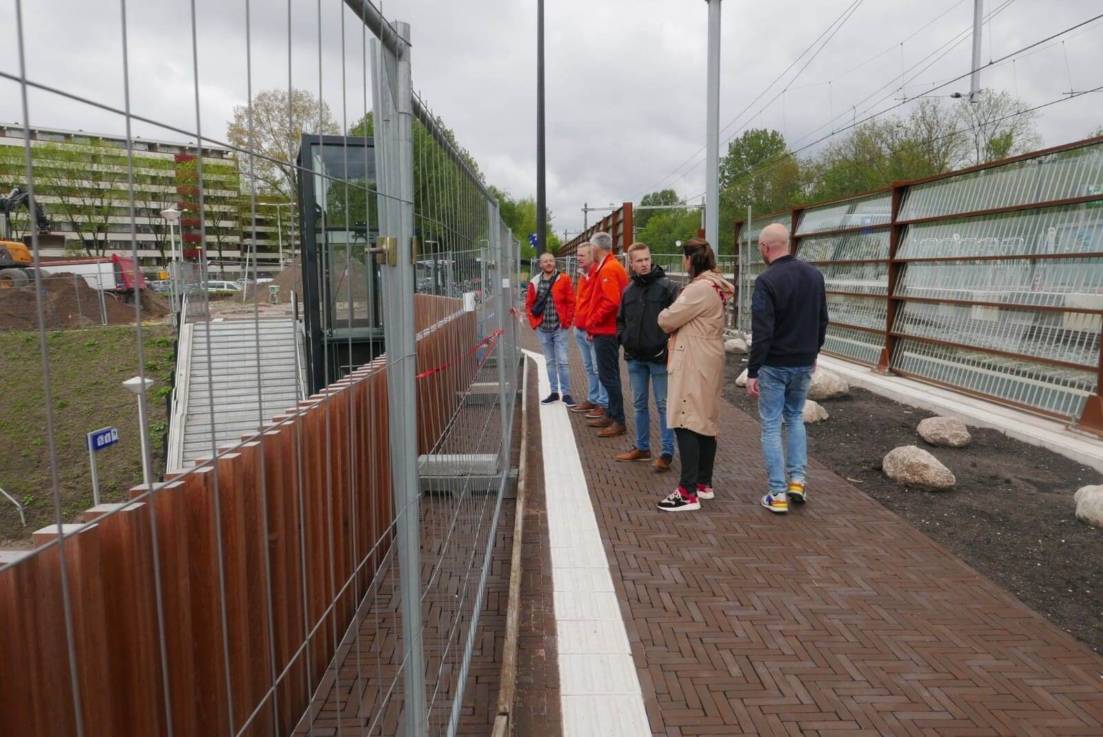 Na een korte autorit komen we aan op station Diemen. Waar de spoorwegovergang eerder de weg doorkruiste, gaat deze er nu overheen. We kwamen via deze weg aanrijden en kregen al een mooie eerste indruk van het project.