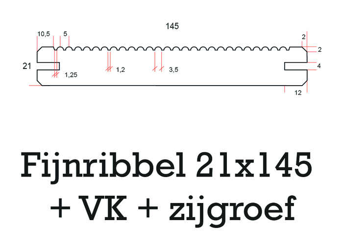 Fijnribbel dekdeel 21x145 + VK + zijgroef Nr: