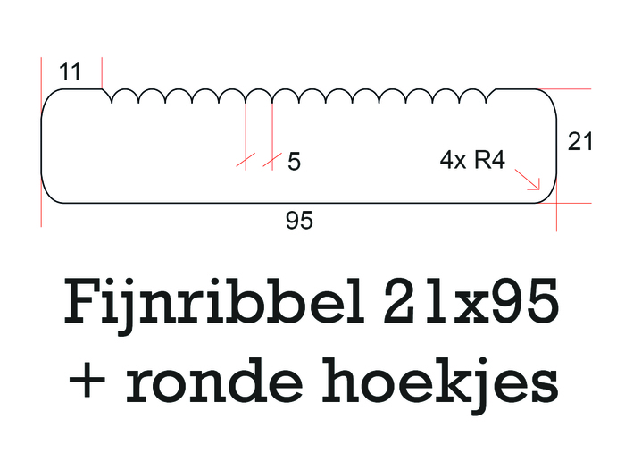 Fijnribbel ronde hoekjes 21x95 Nr: