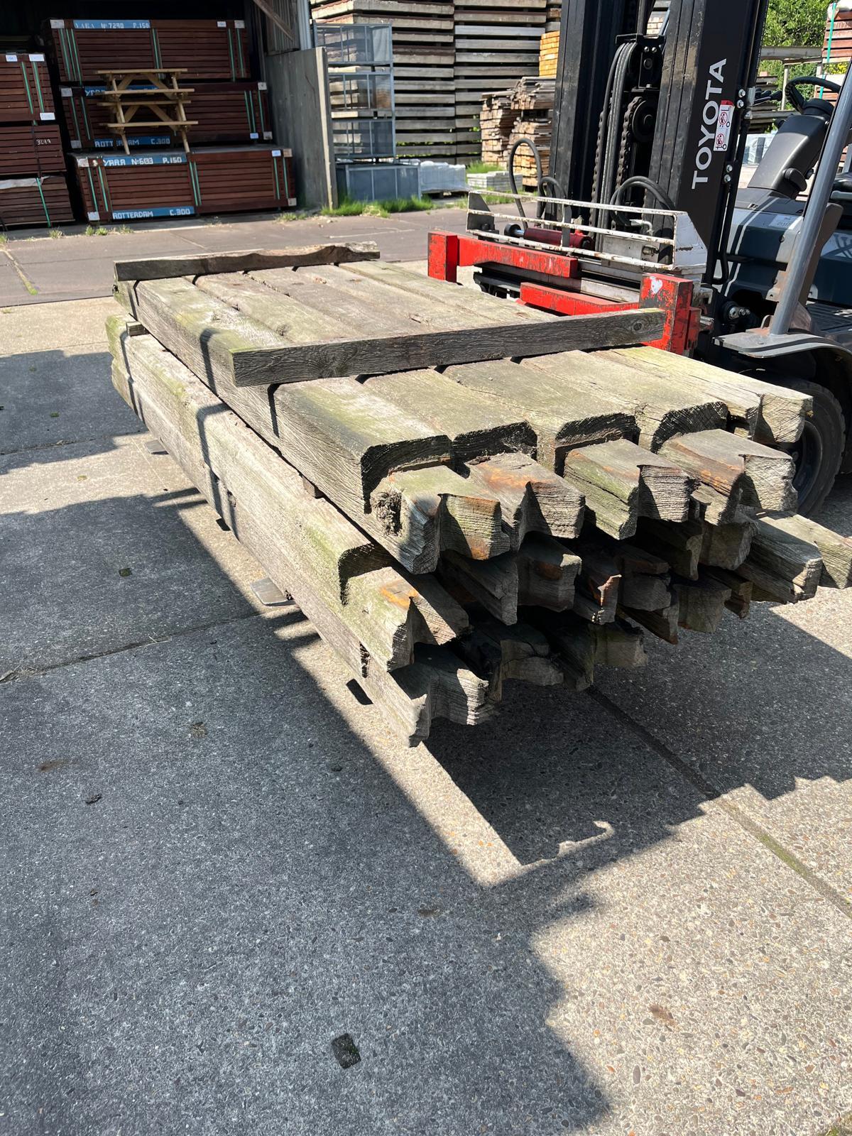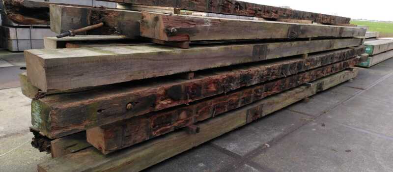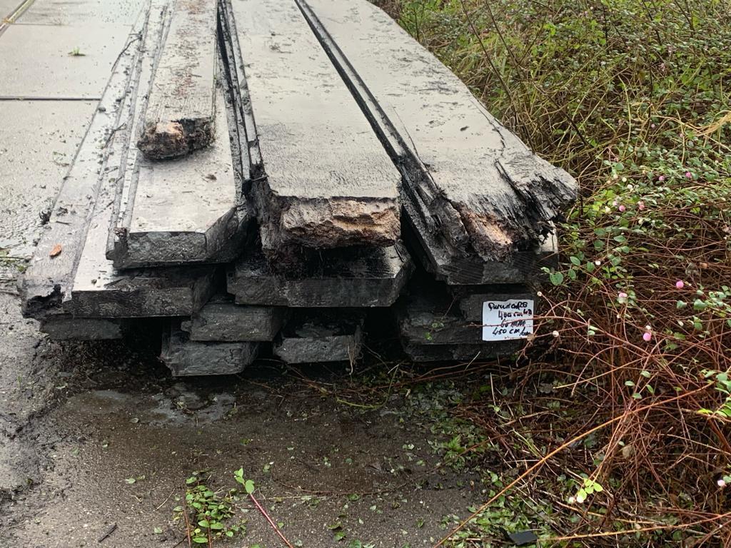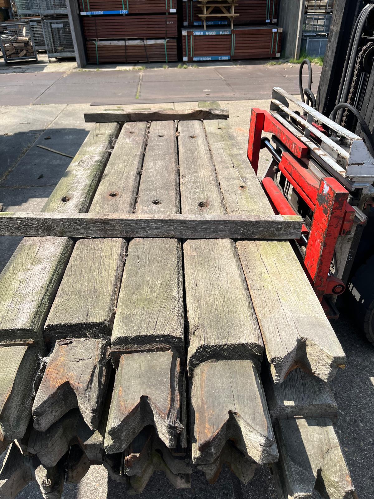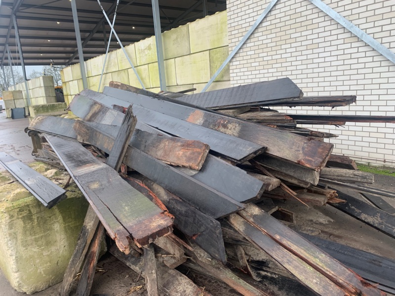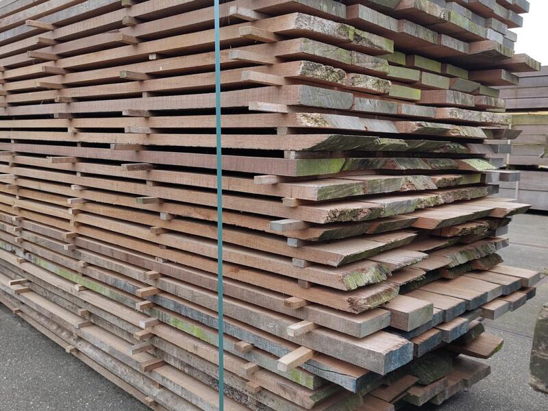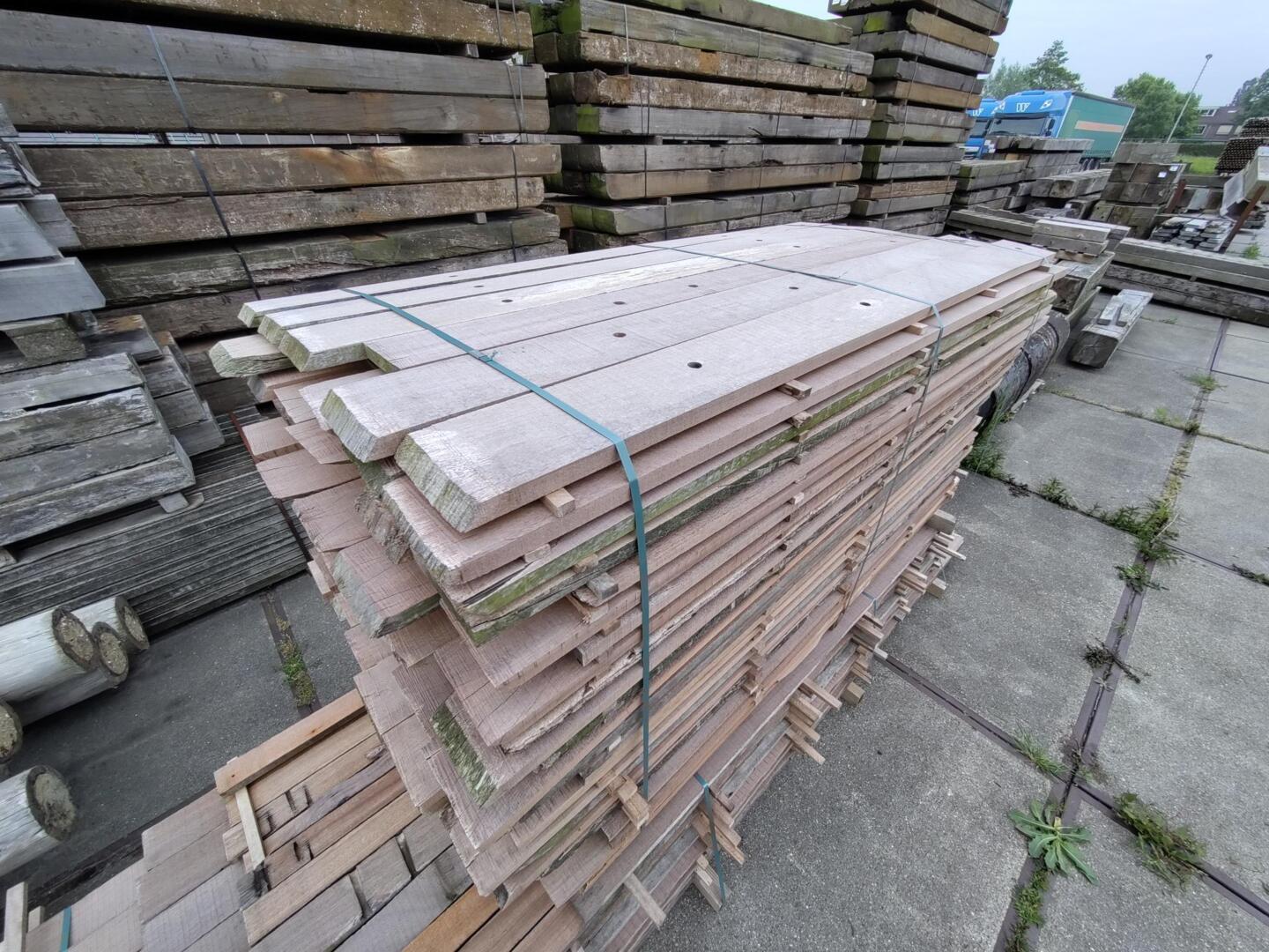 Hardhouten planken afkomstig van een beschoeiing