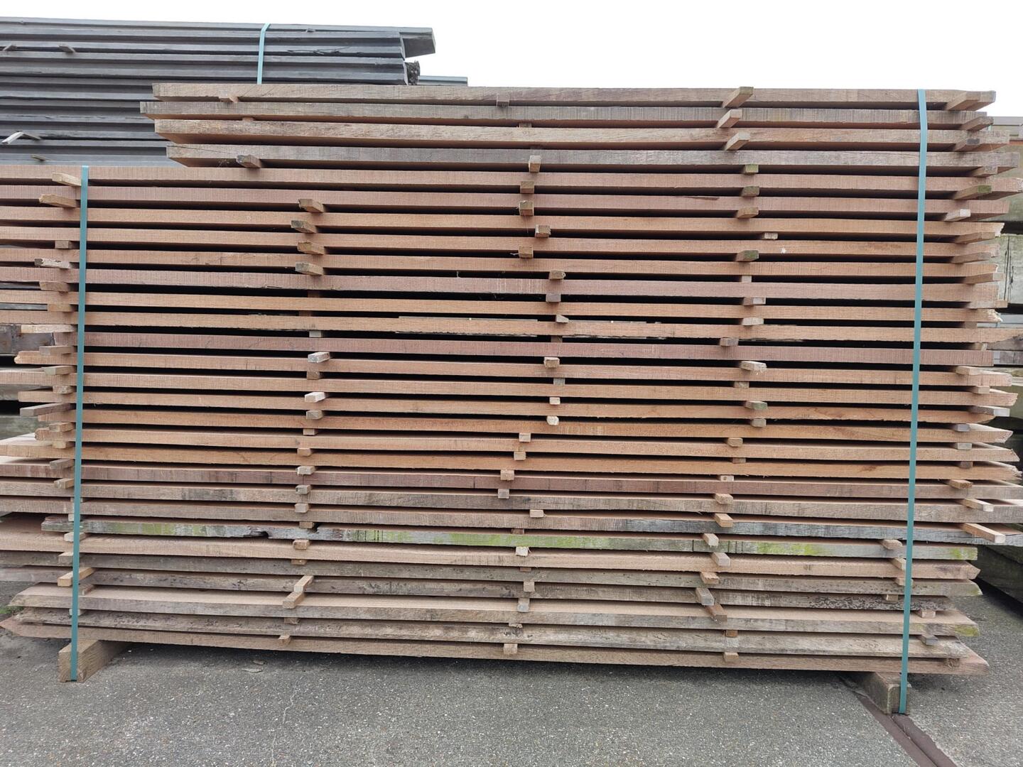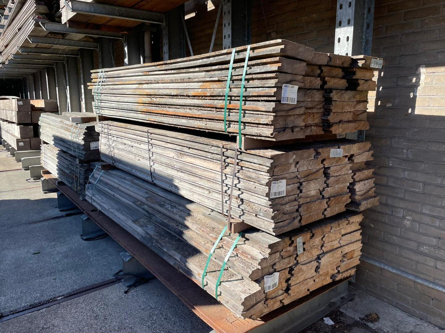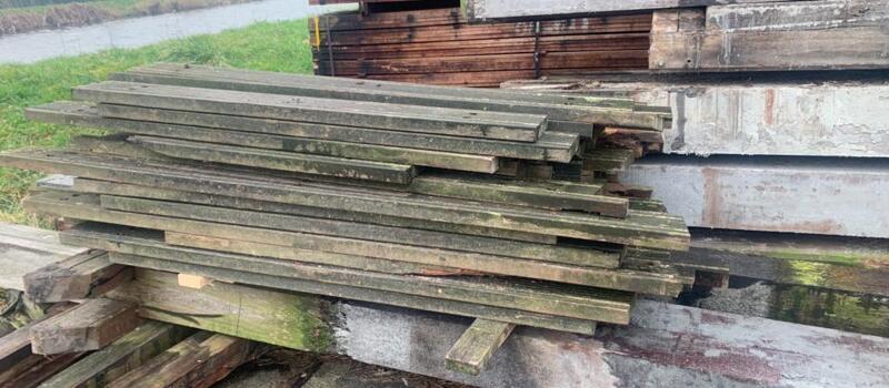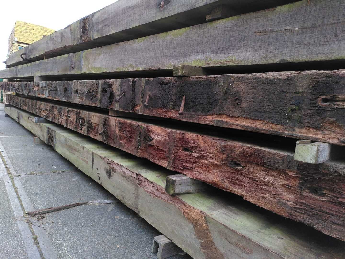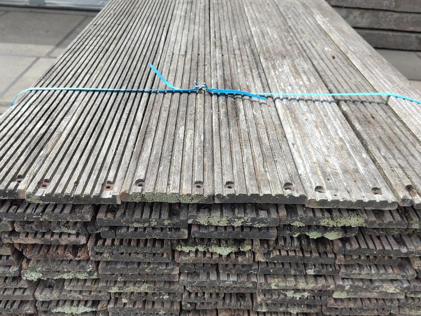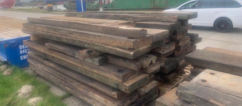 Hardhouten planken afkomstig van een beschoeiing