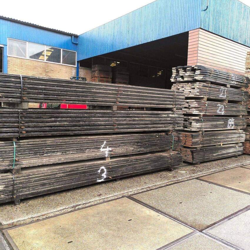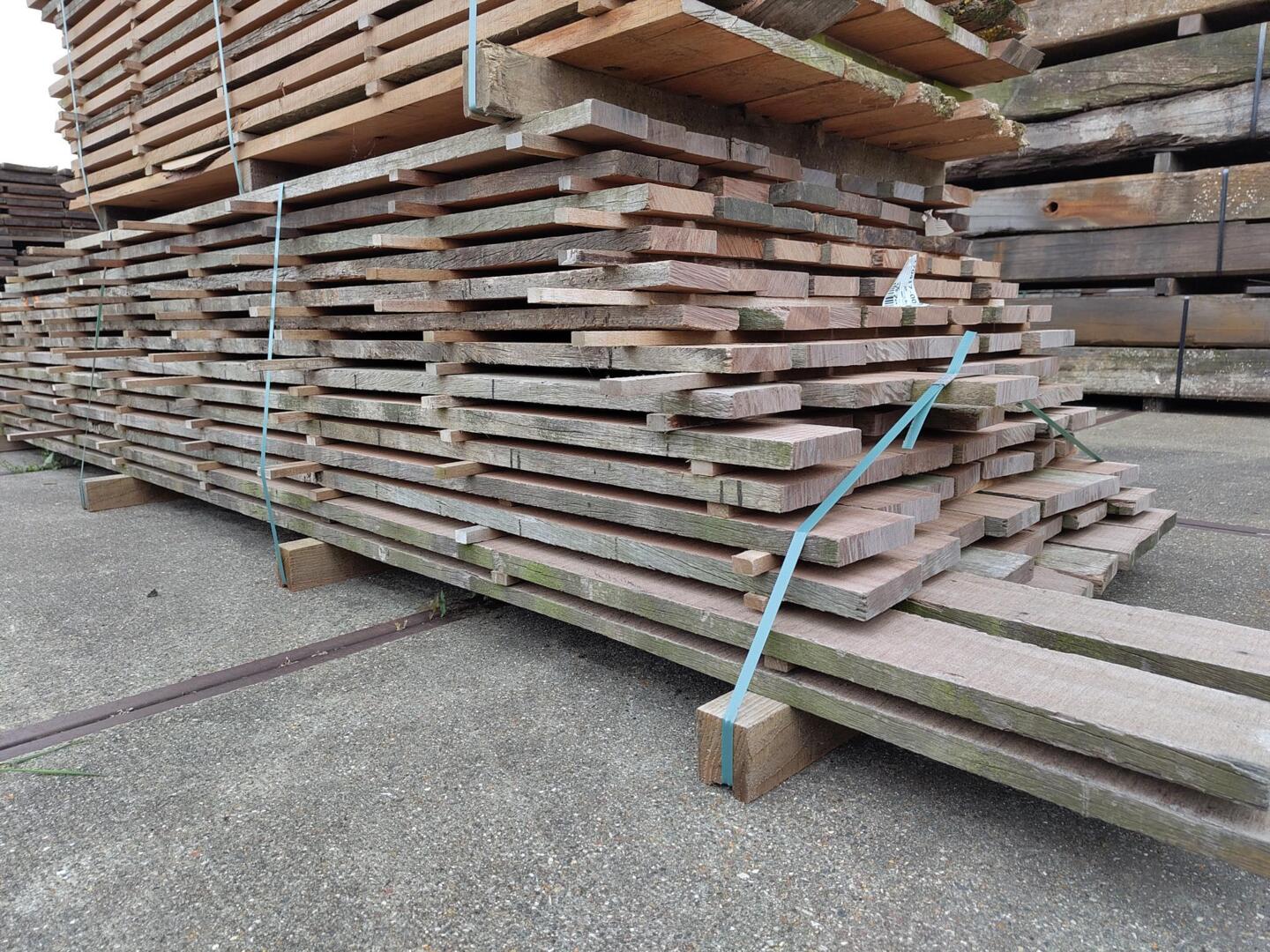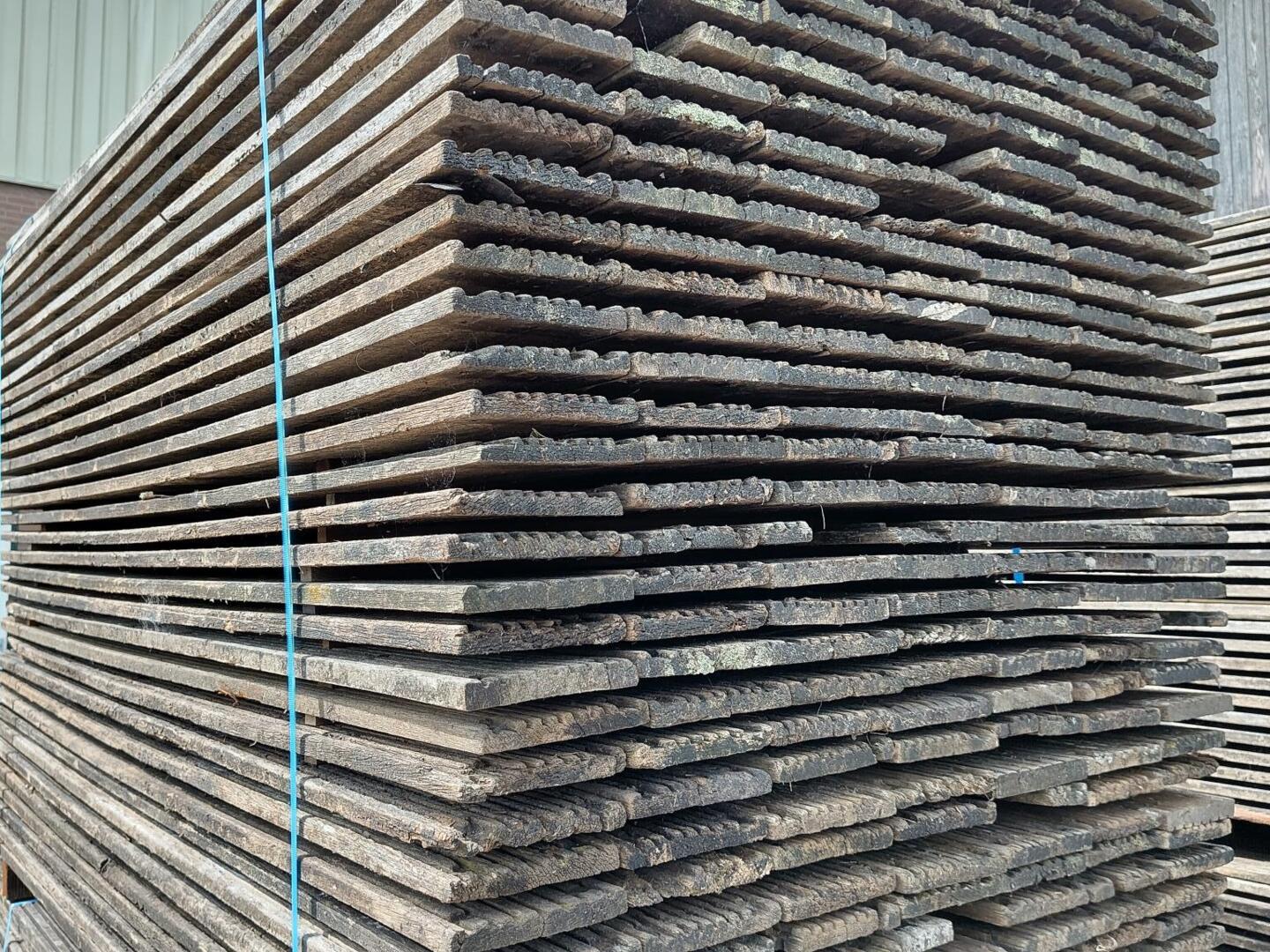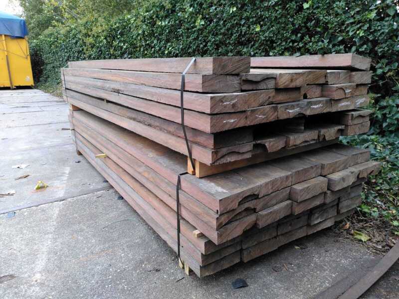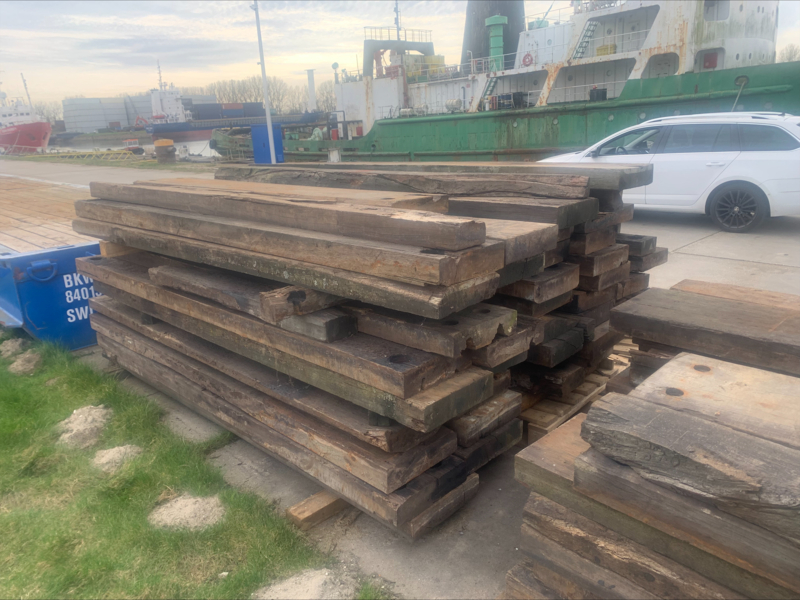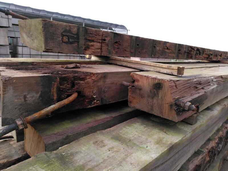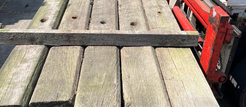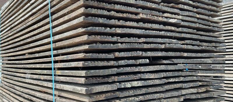 Hardhouten planken afkomstig van een beschoeiing