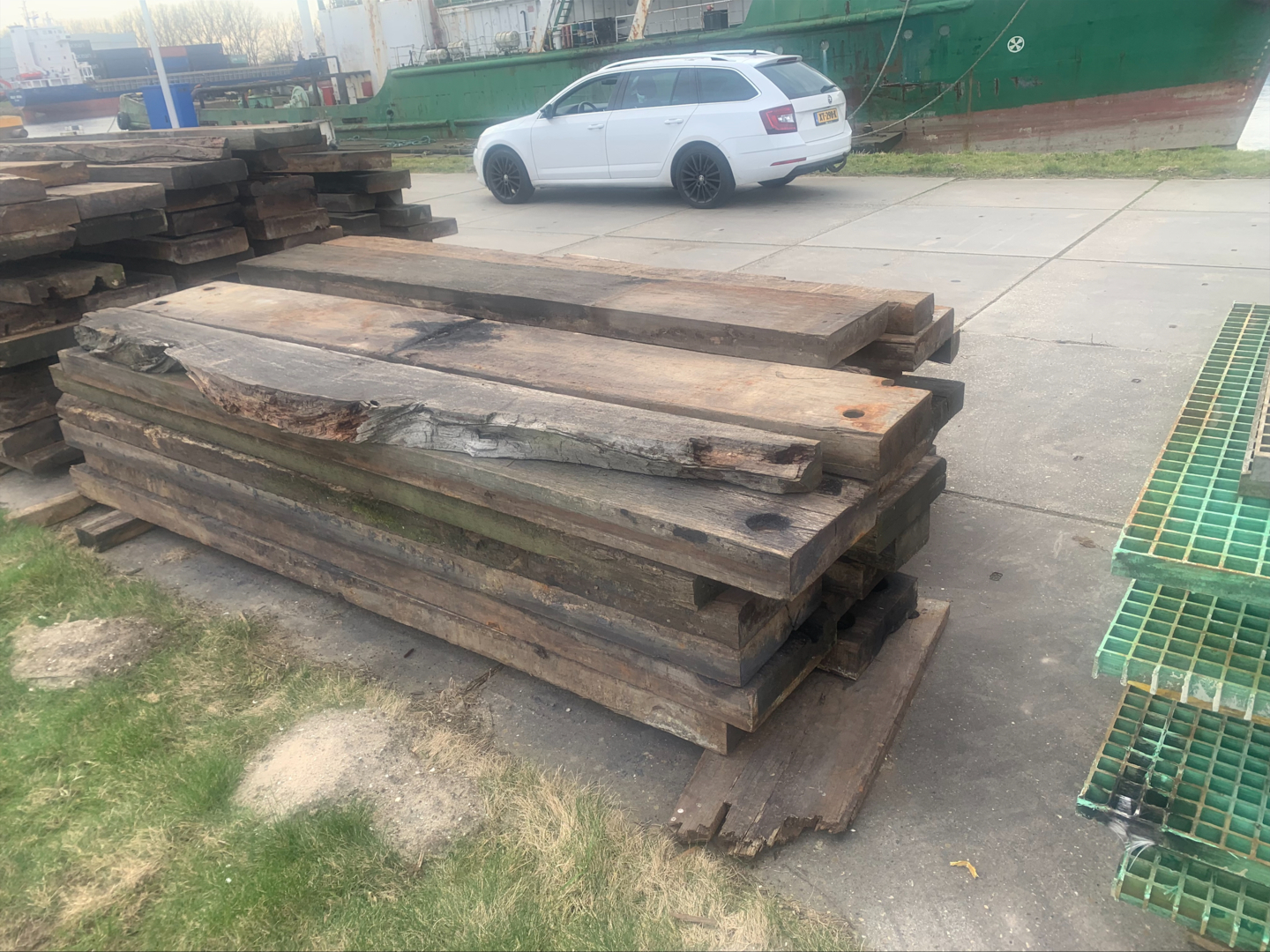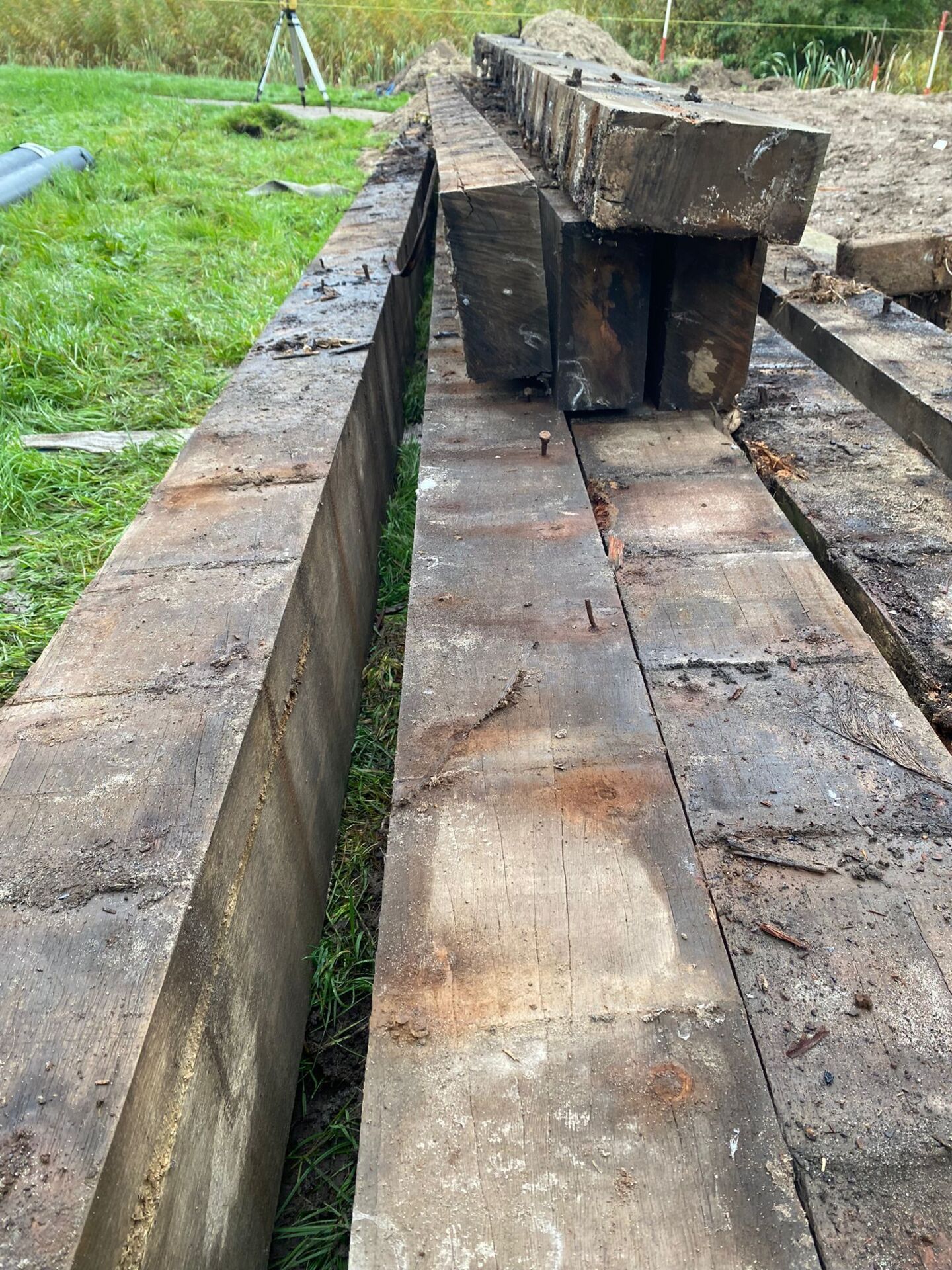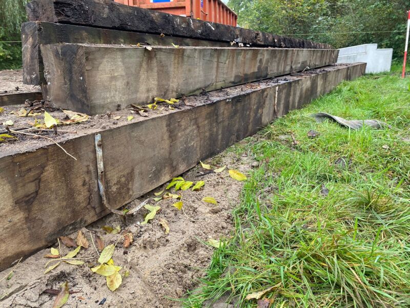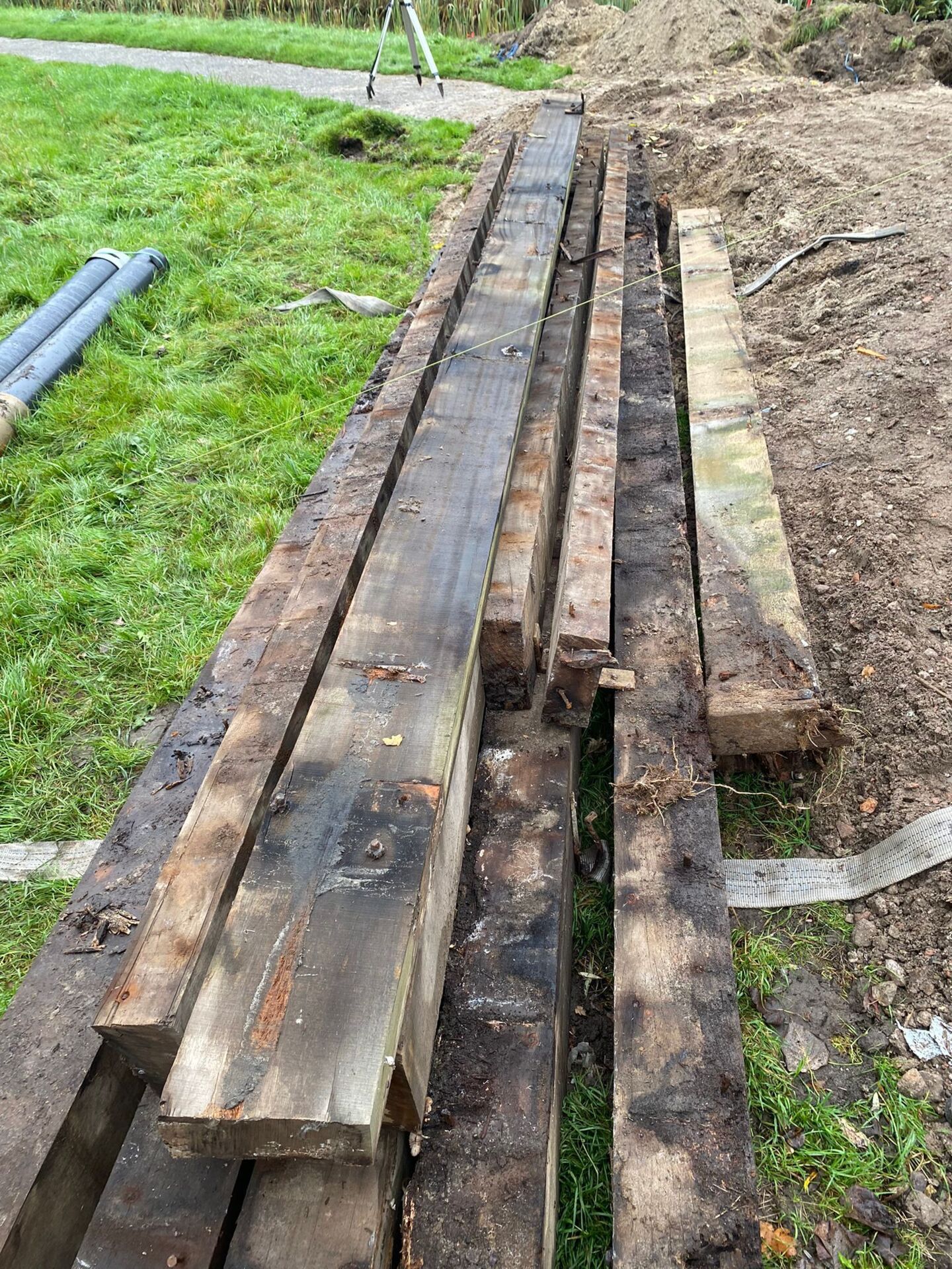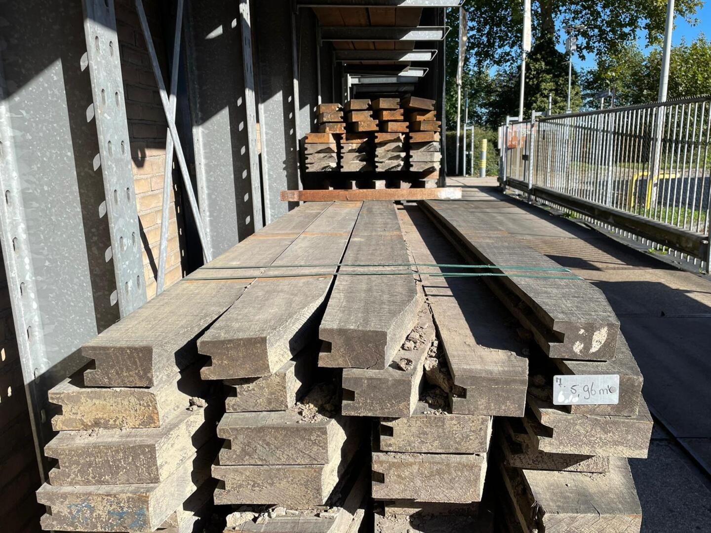 Hardhouten planken afkomstig van een beschoeiing