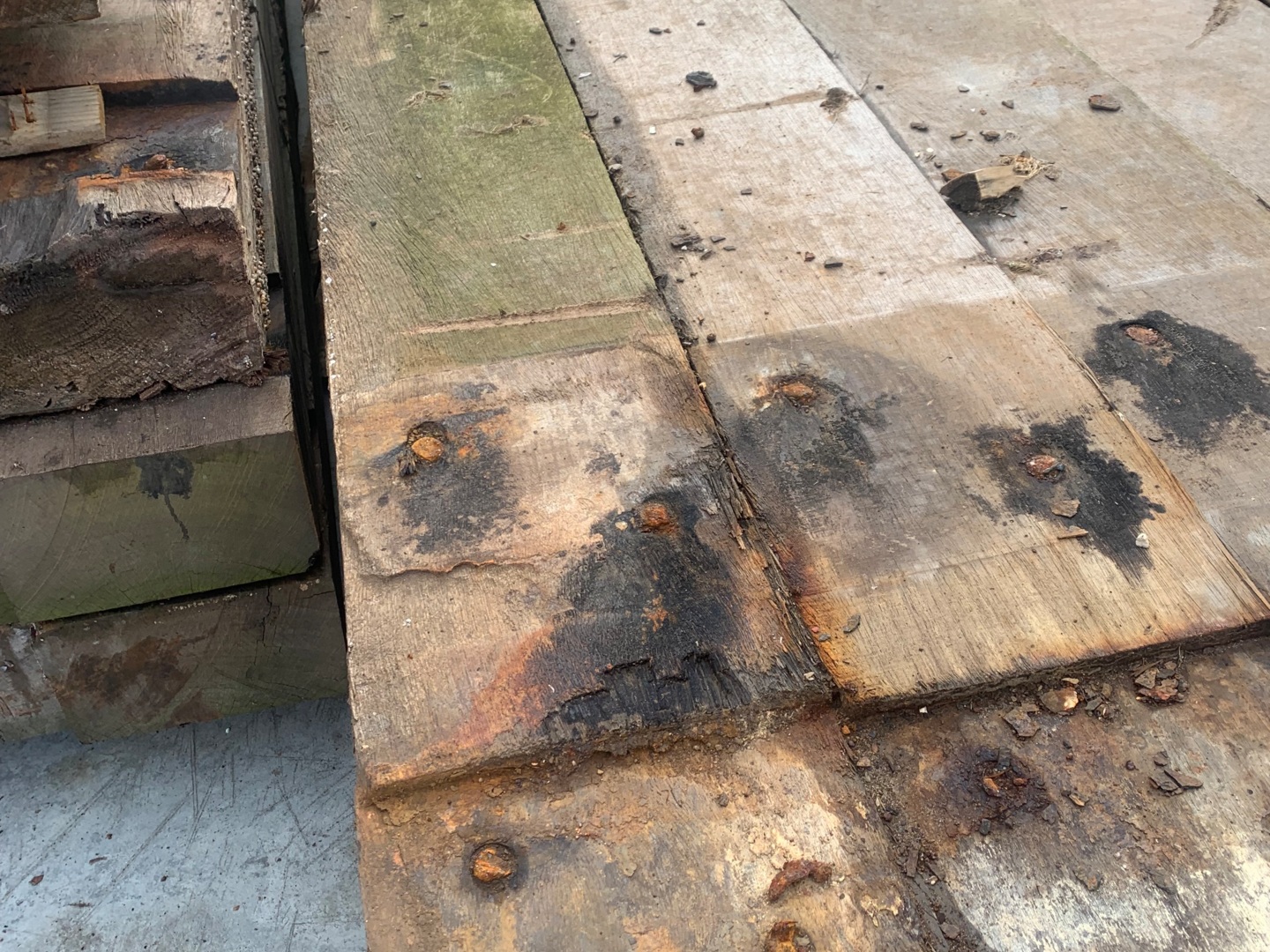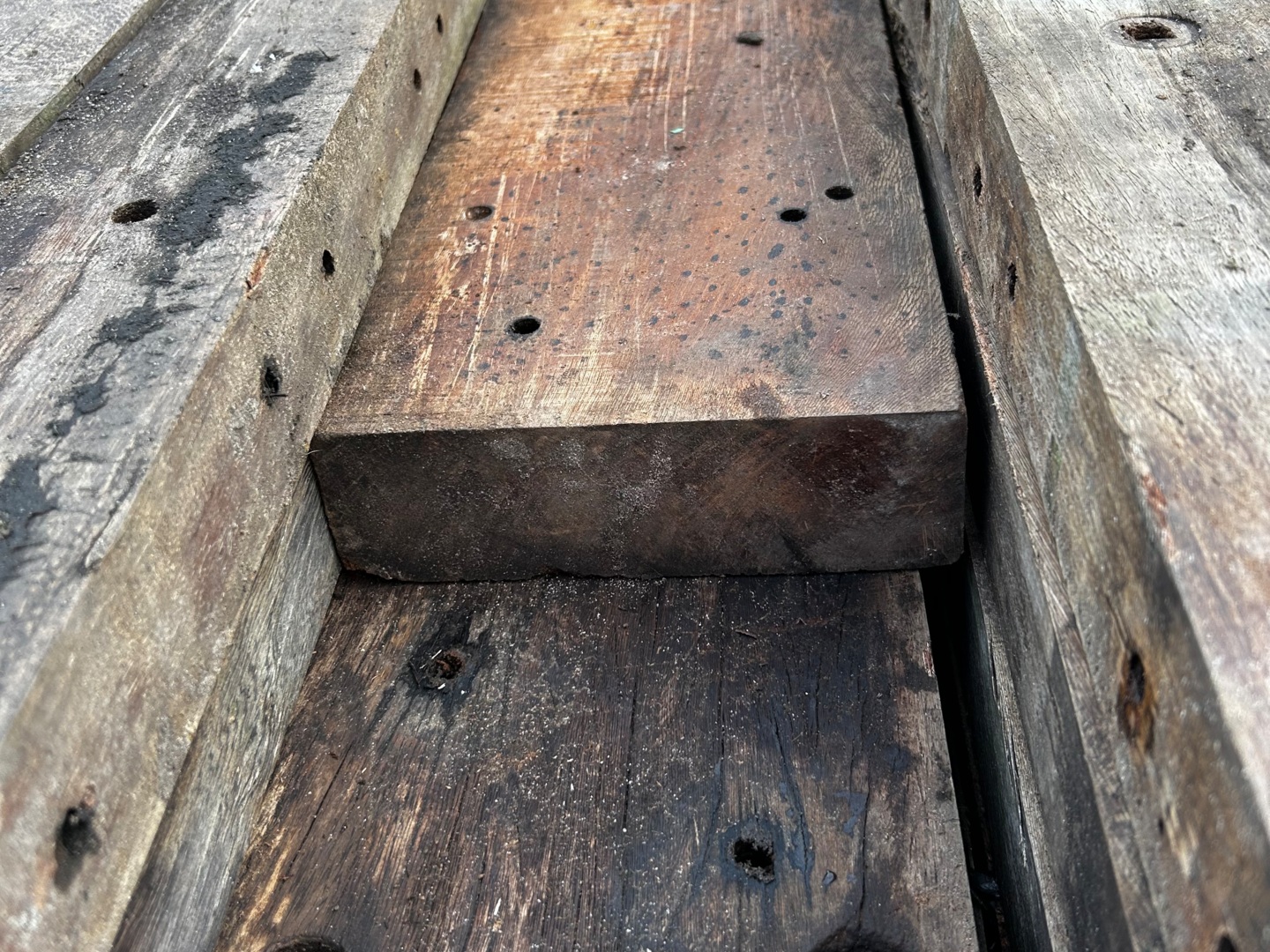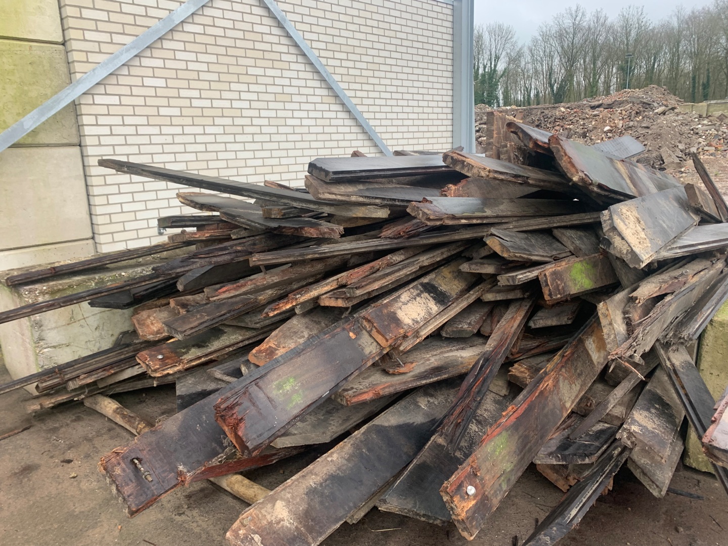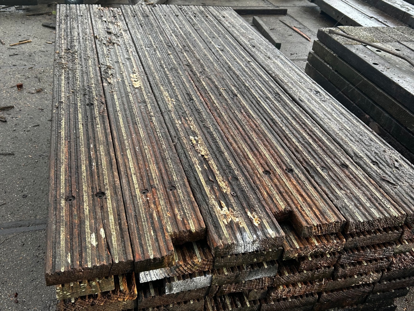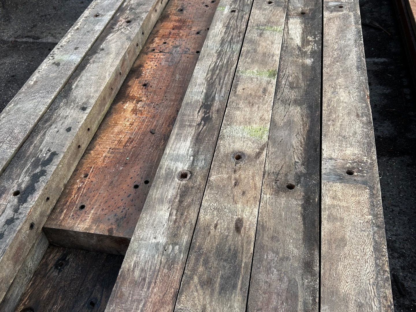 Hardhouten planken afkomstig van een beschoeiing