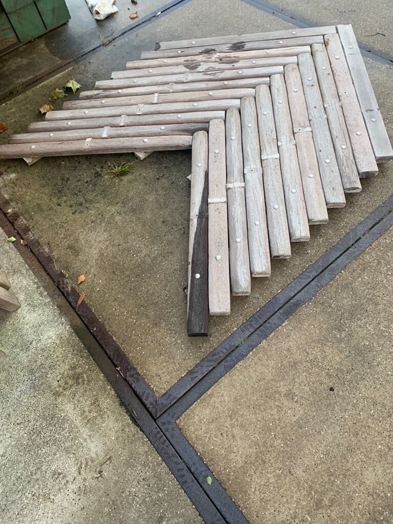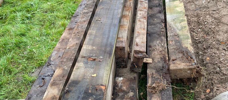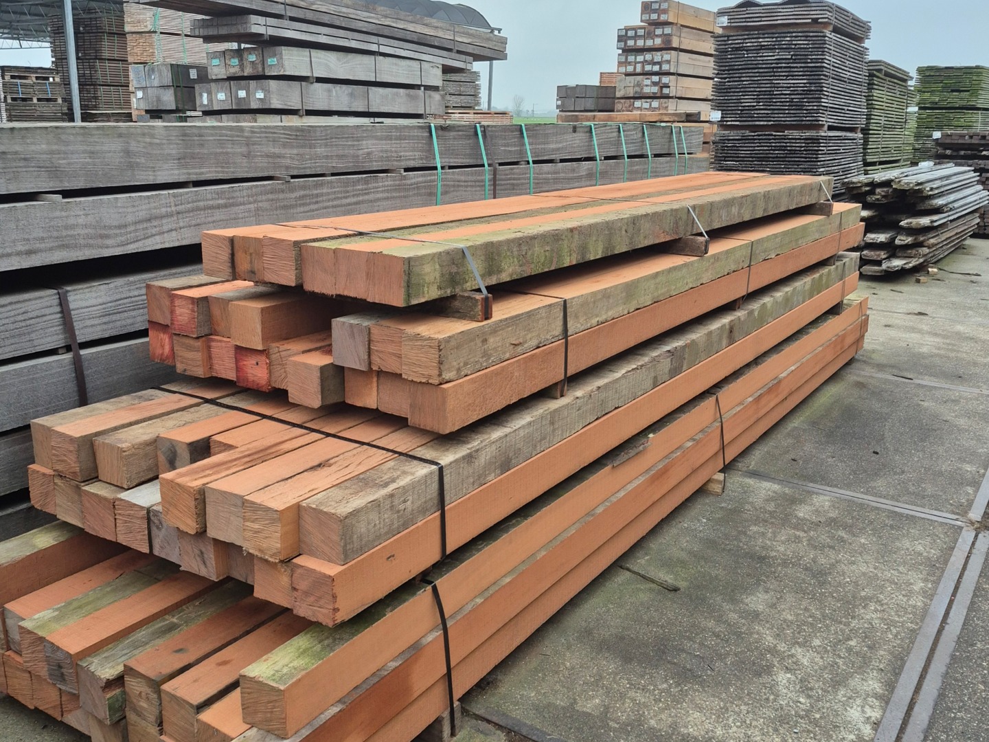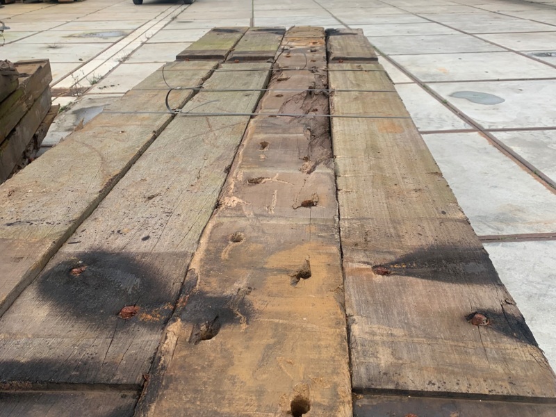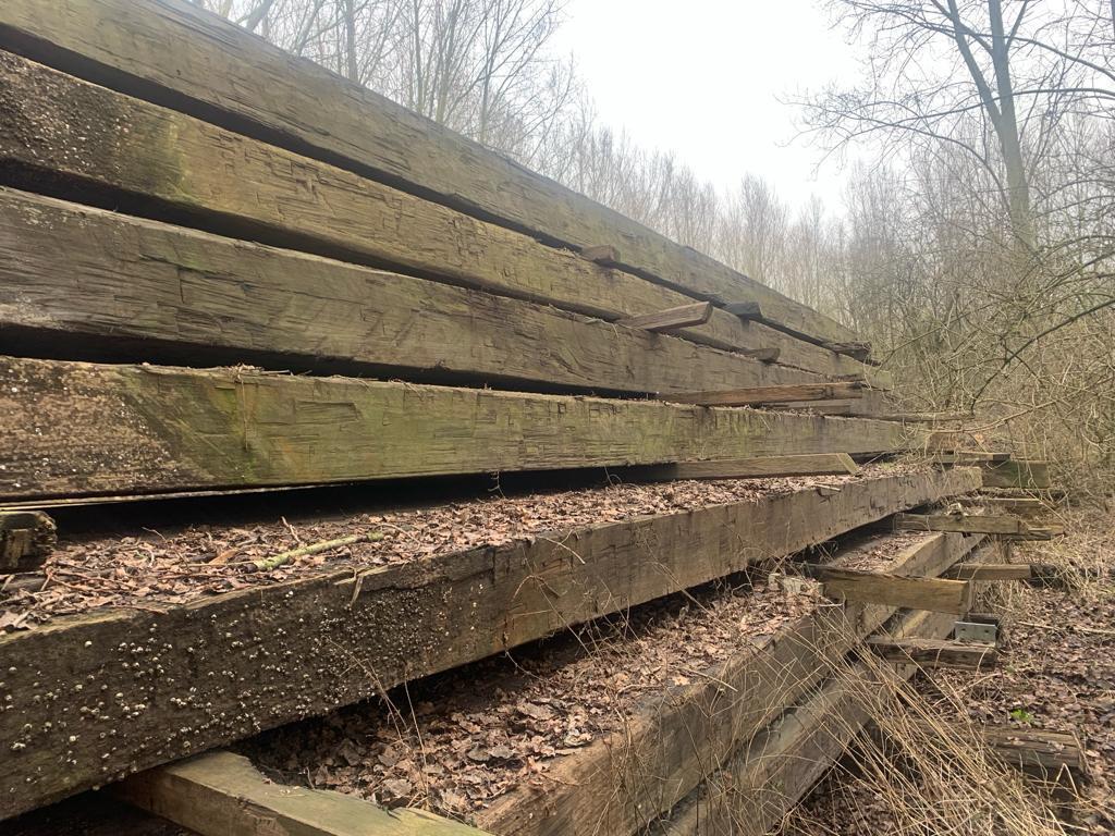Vlonders van Hardhouten balkjes. Deze zijn gebruikt geweest als stalbodems. Fraai voor een vlonderpad! Dit hout hebben we voor u geoogst en schoongemaakt. Wilt u er nu iets moois van maken? Neem gerust contact met ons op!