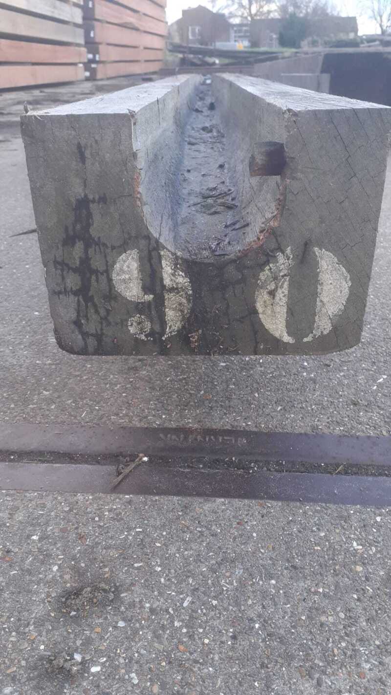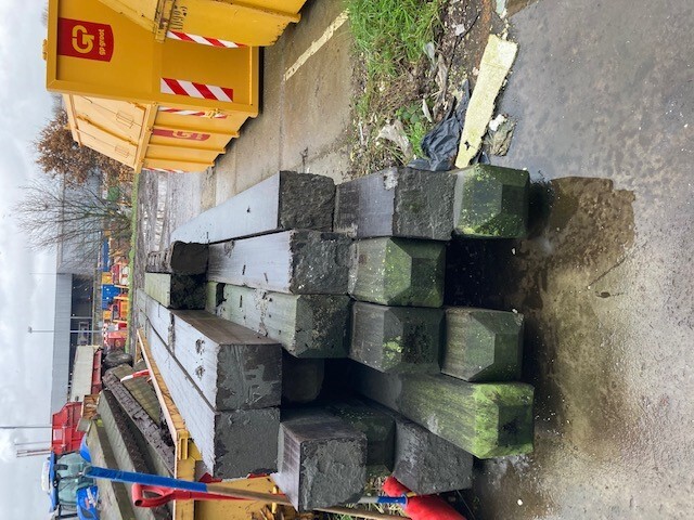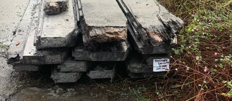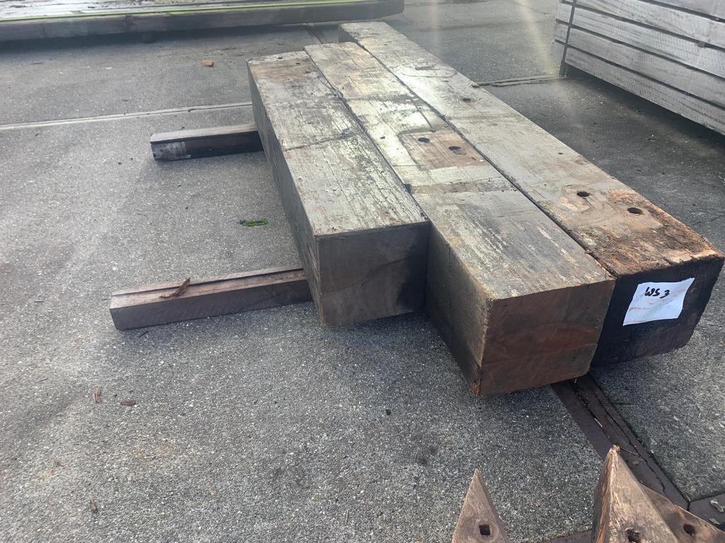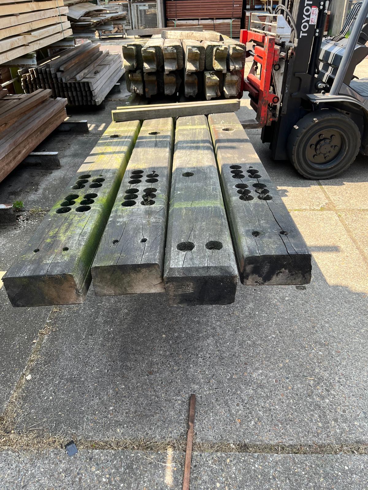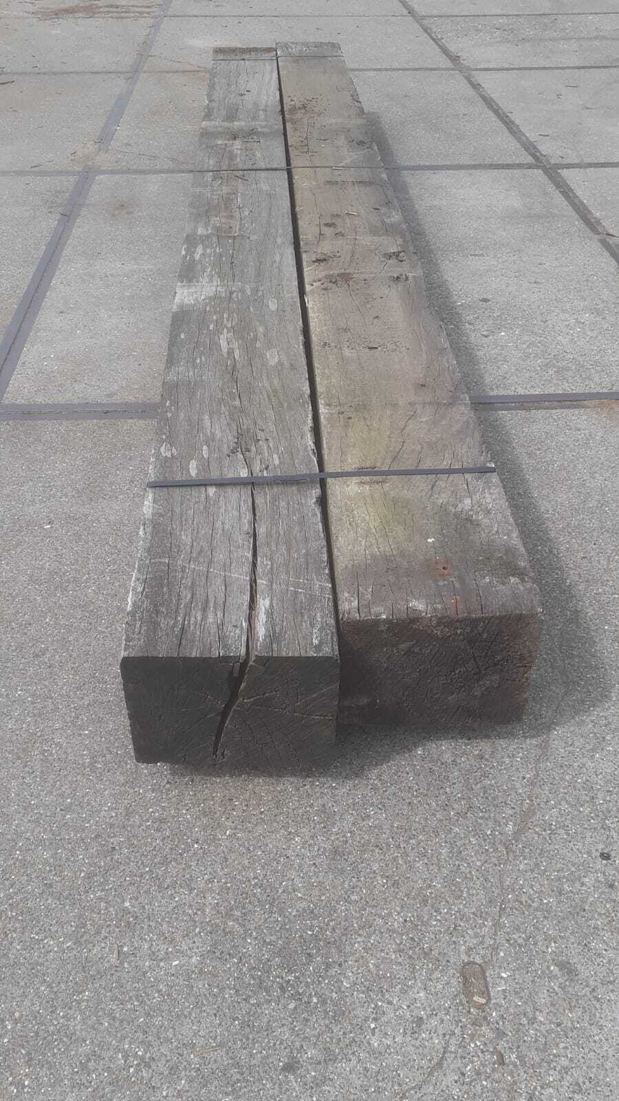 Korte stukken van brugpalen. prima geschikt als sokkel of borderrand