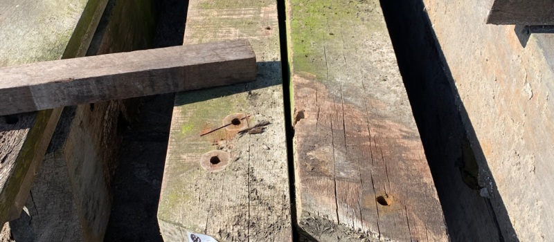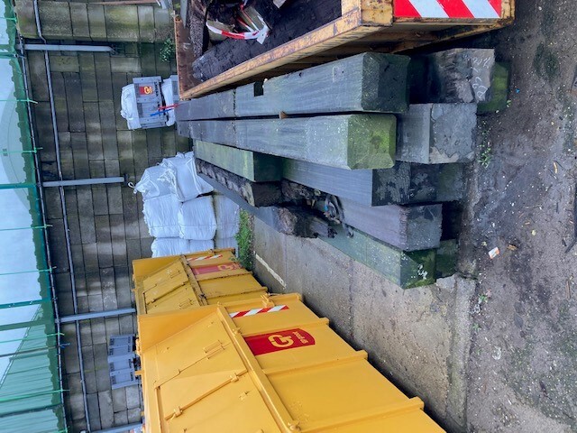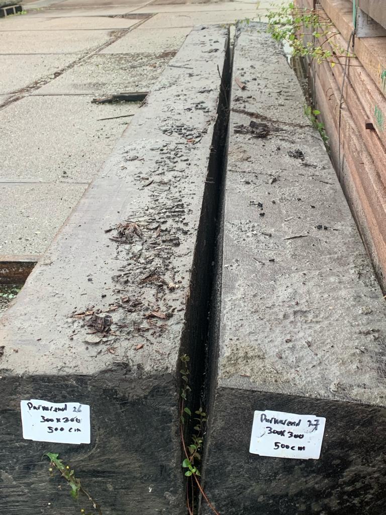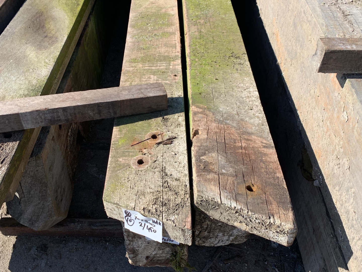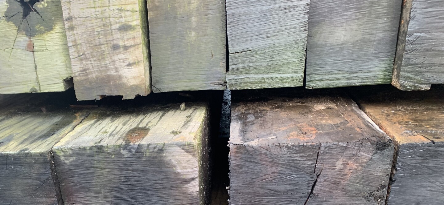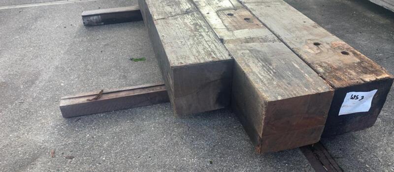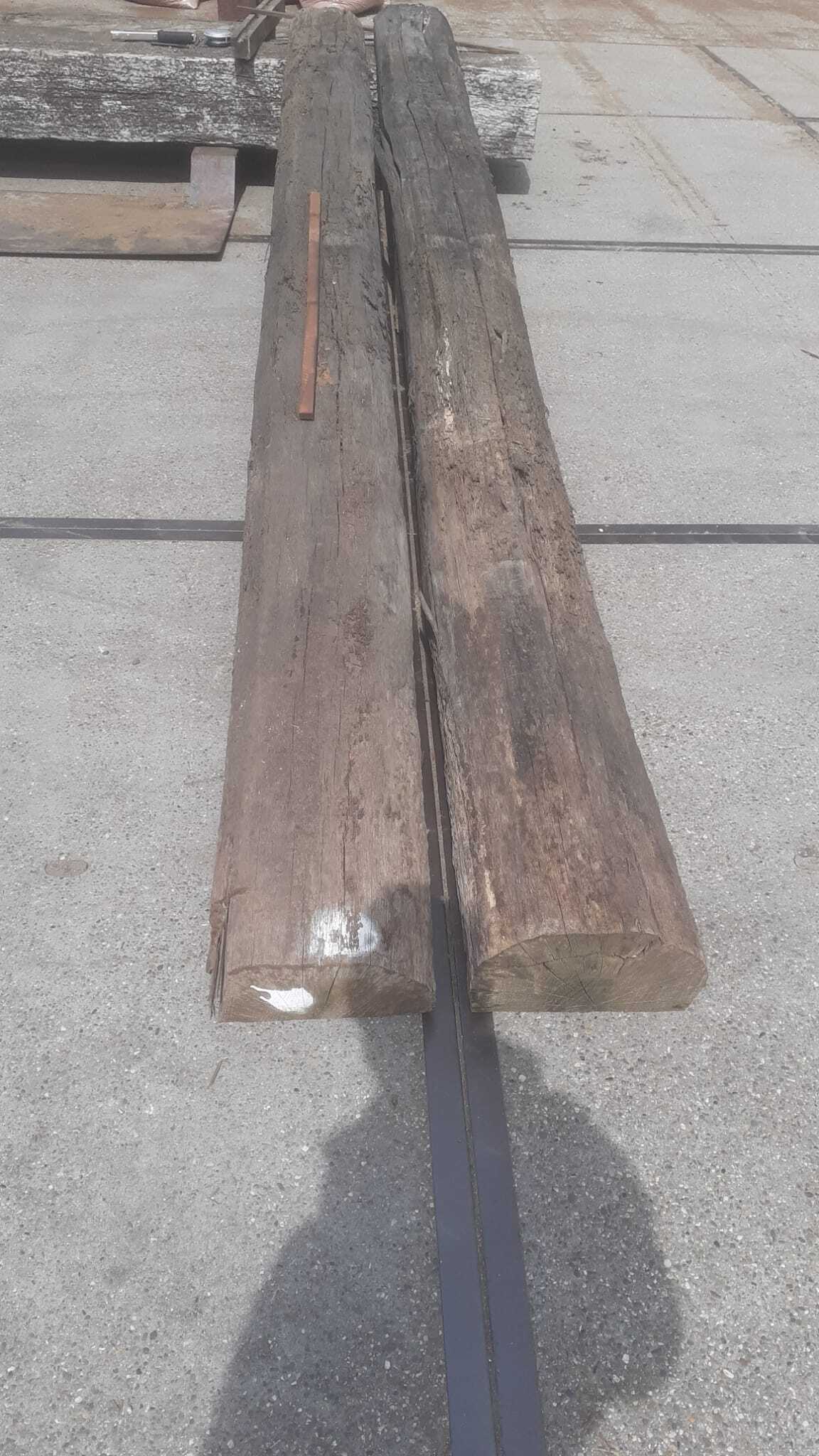 Korte stukken van brugpalen. prima geschikt als sokkel of borderrand