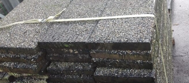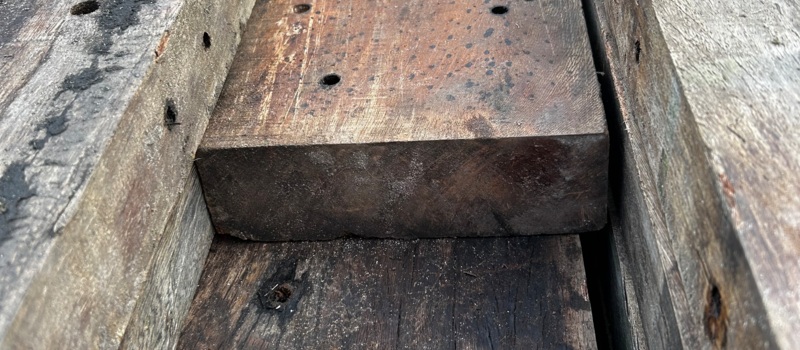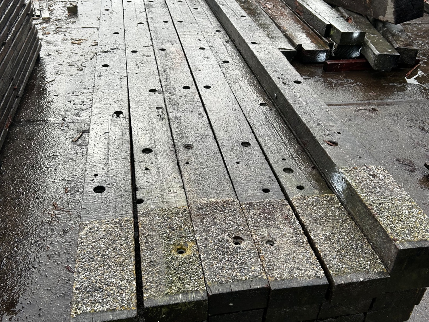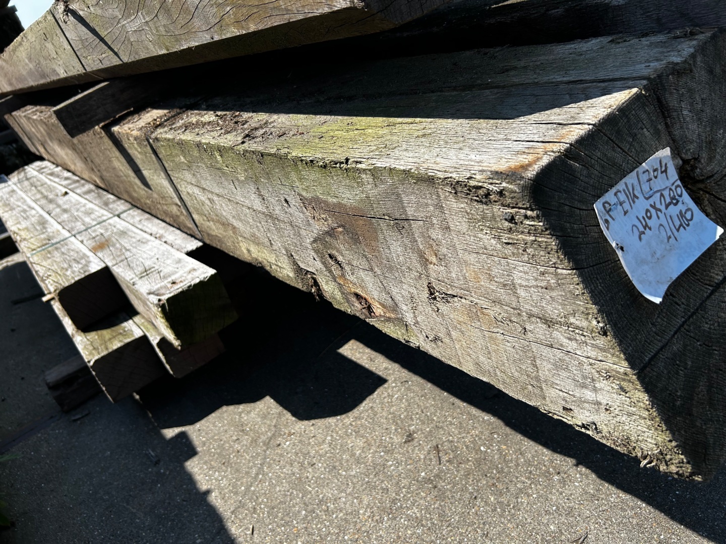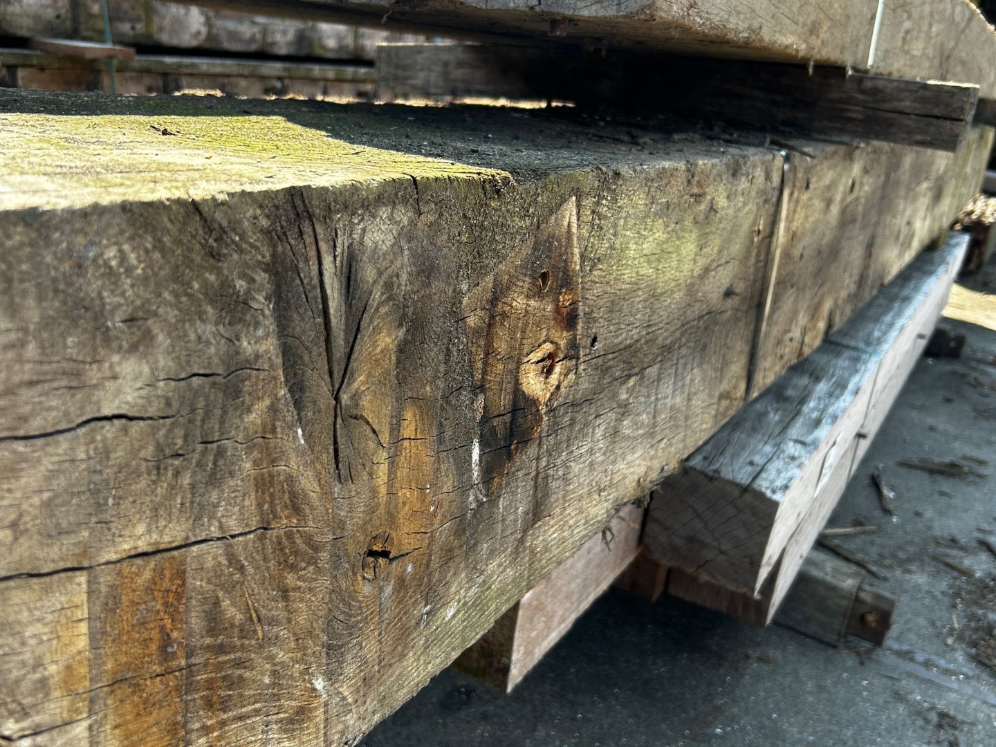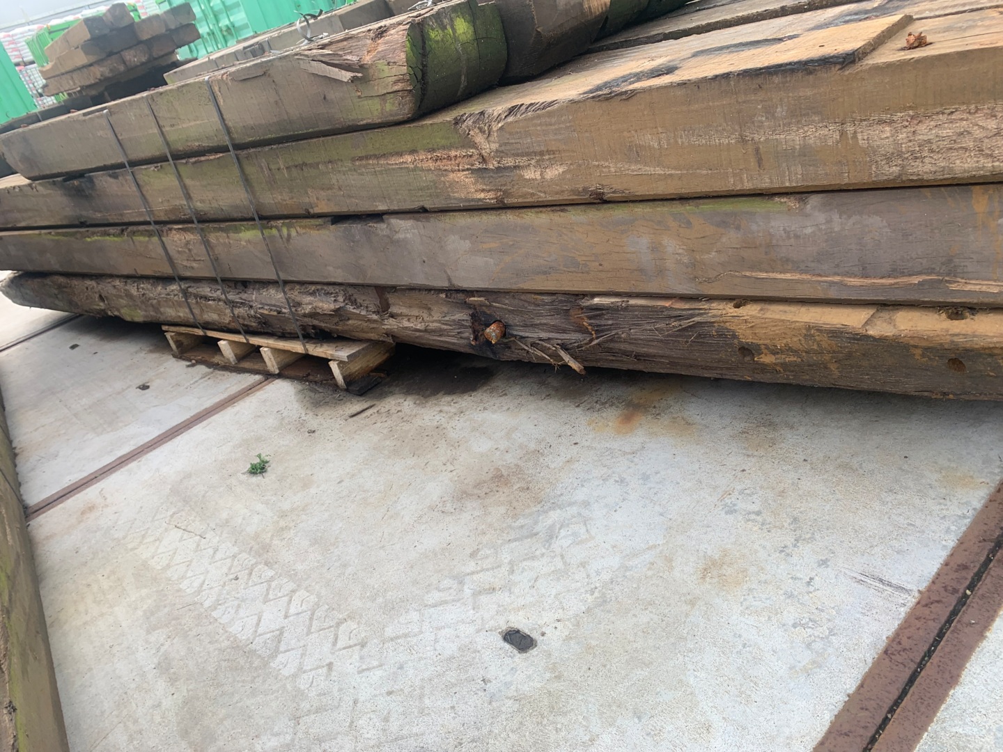 Korte stukken van brugpalen. prima geschikt als sokkel of borderrand
