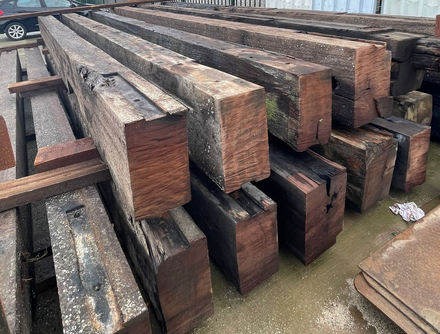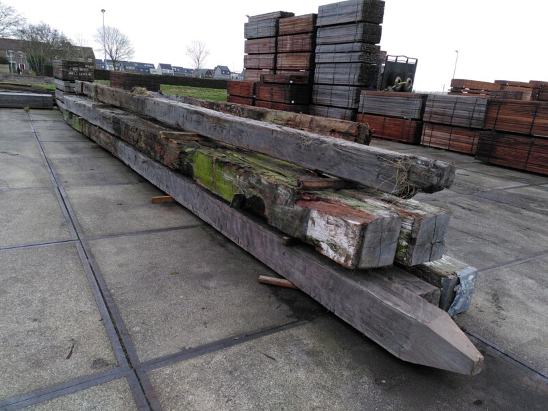 Mooie grote lange Cumaru palen. In zeer goede staat