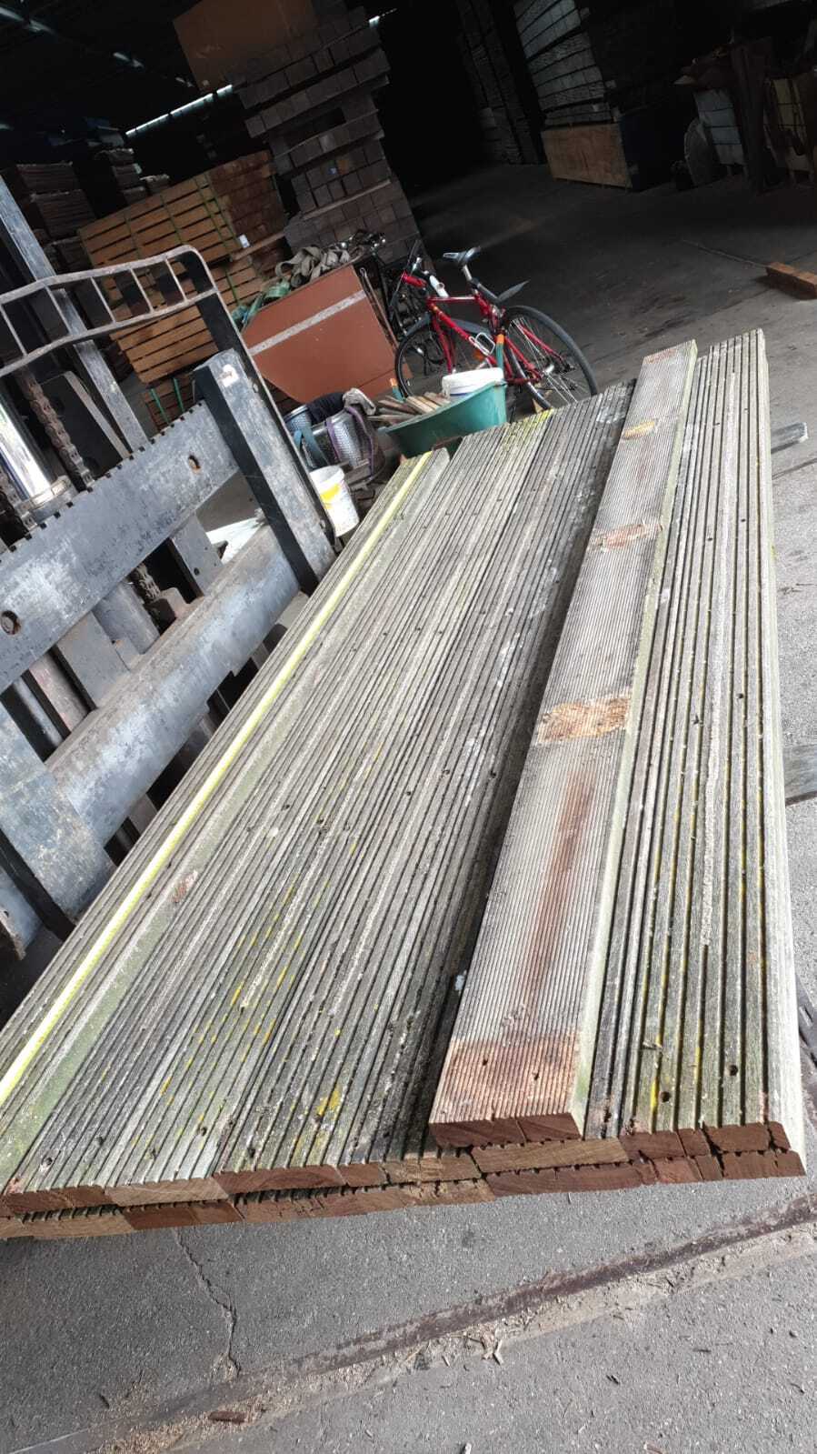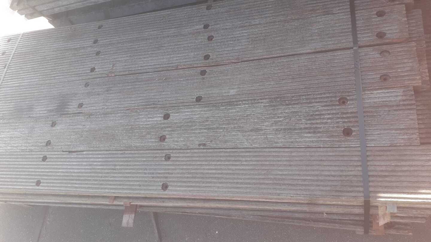 Partij Bankirai dekdelen, afkomstig van een zeesteiger. Prima toe te passen als een fraaie gevelbekleding of gewoon weer voor een vlonder. Dit hout hebben we voor u geoogst en schoongemaakt. Wilt u er nu iets moois van maken? Neem gerust contact met ons op!