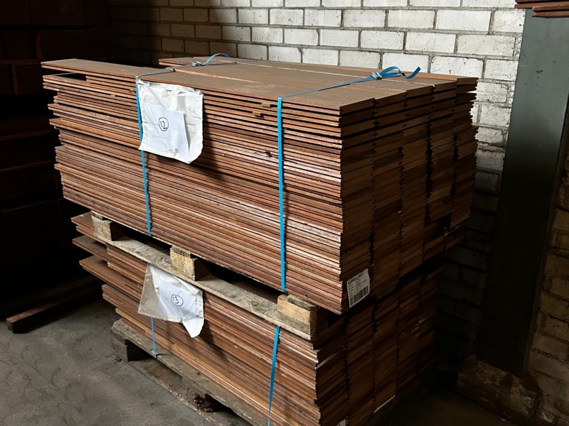 Prima partij Azobe brugdekdelen voorzien van gripstrips. Wilt u er nu iets moois van maken? Neem gerust contact met ons op!