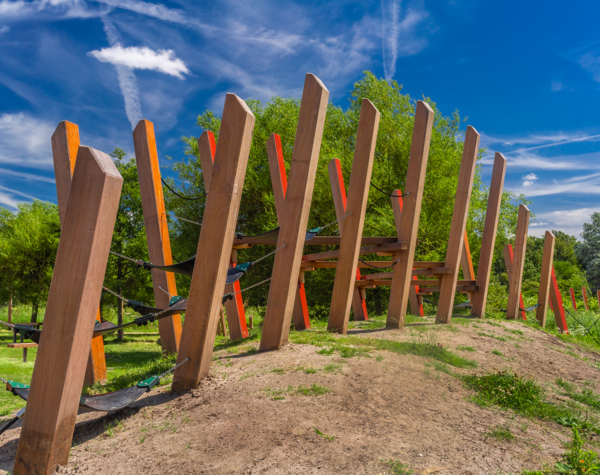 FSC® Cumaru houten leuning van fietsbrug door oorlogsmuseum Overloon (Foto Albert Hendriks - Overloon nieuws)