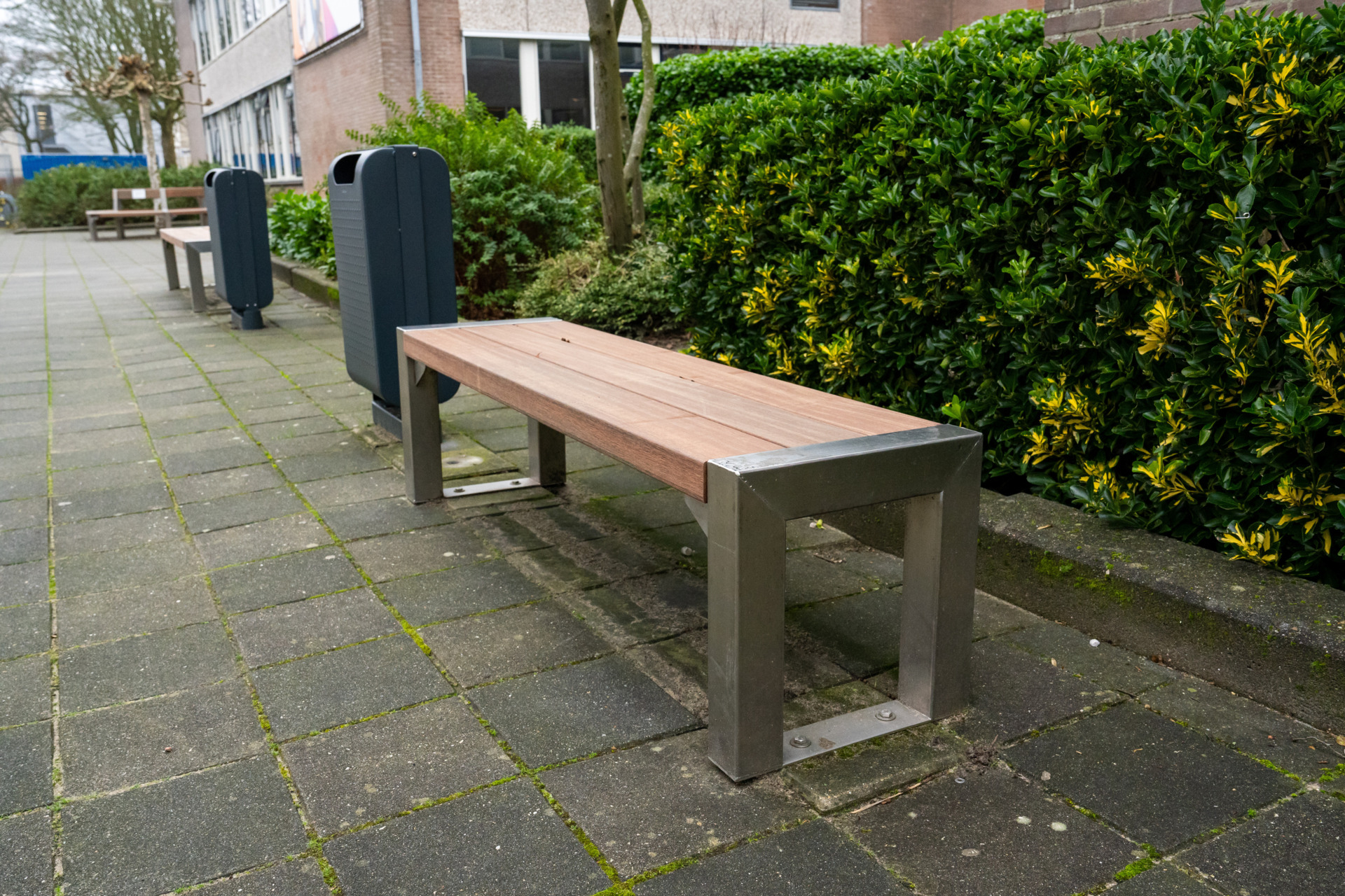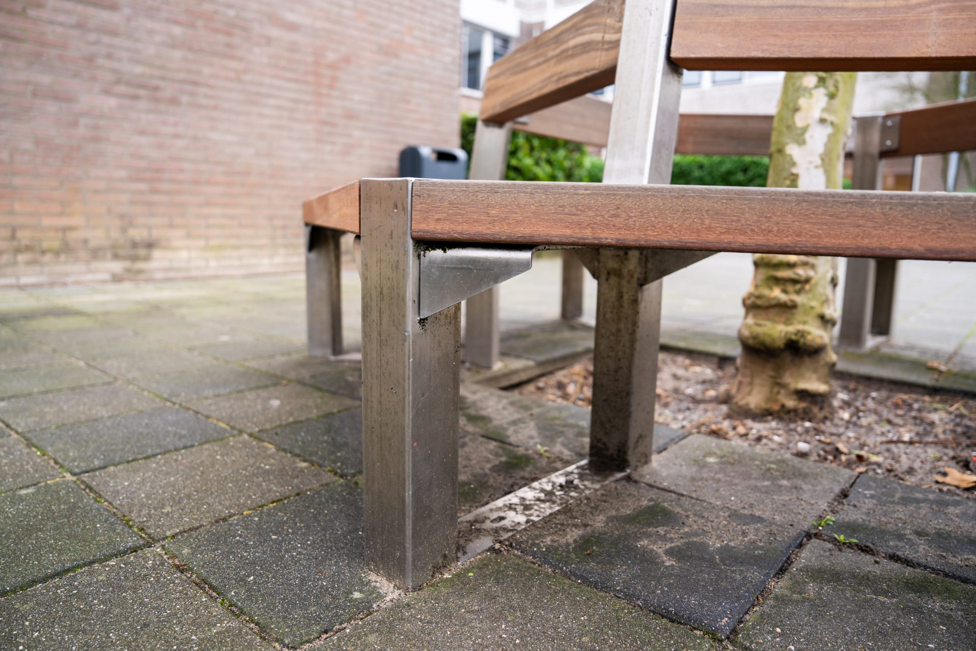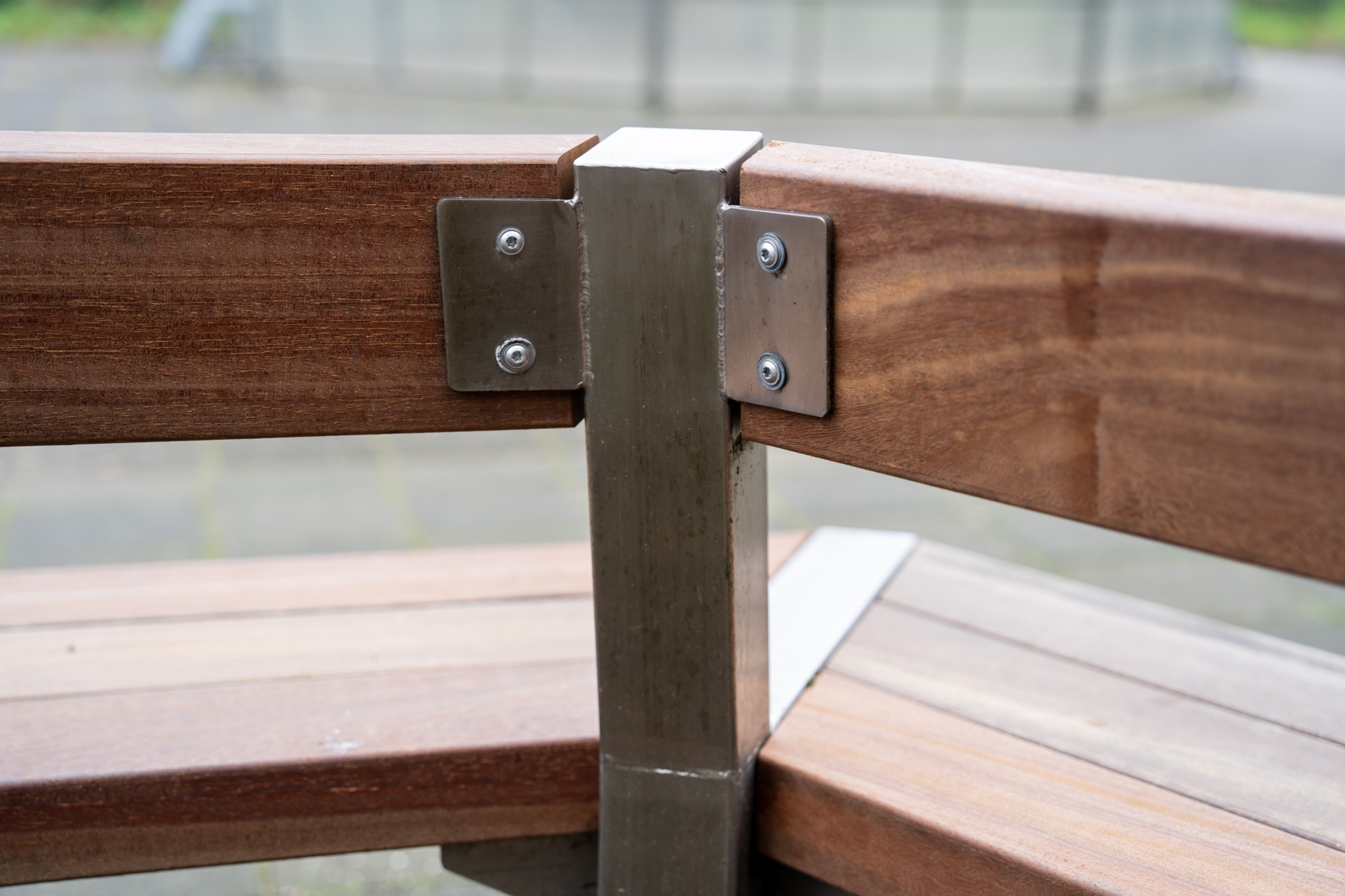 Azobé hout is zwaar en hard. Dat maakt dat deze houtsoort goed voor deze toepassing kan worden gebruikt. Door eigenschappen zoals een hoge slijtvastheid zullen de bankjes de streken van enkele ontdeugende leerlingen goed kunnen weerstaan. Belangrijk voor een langdurig mooi resultaat!