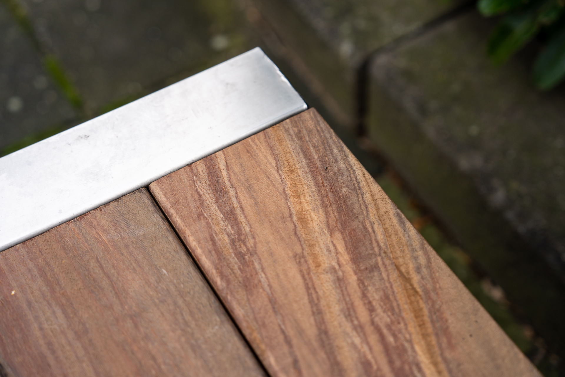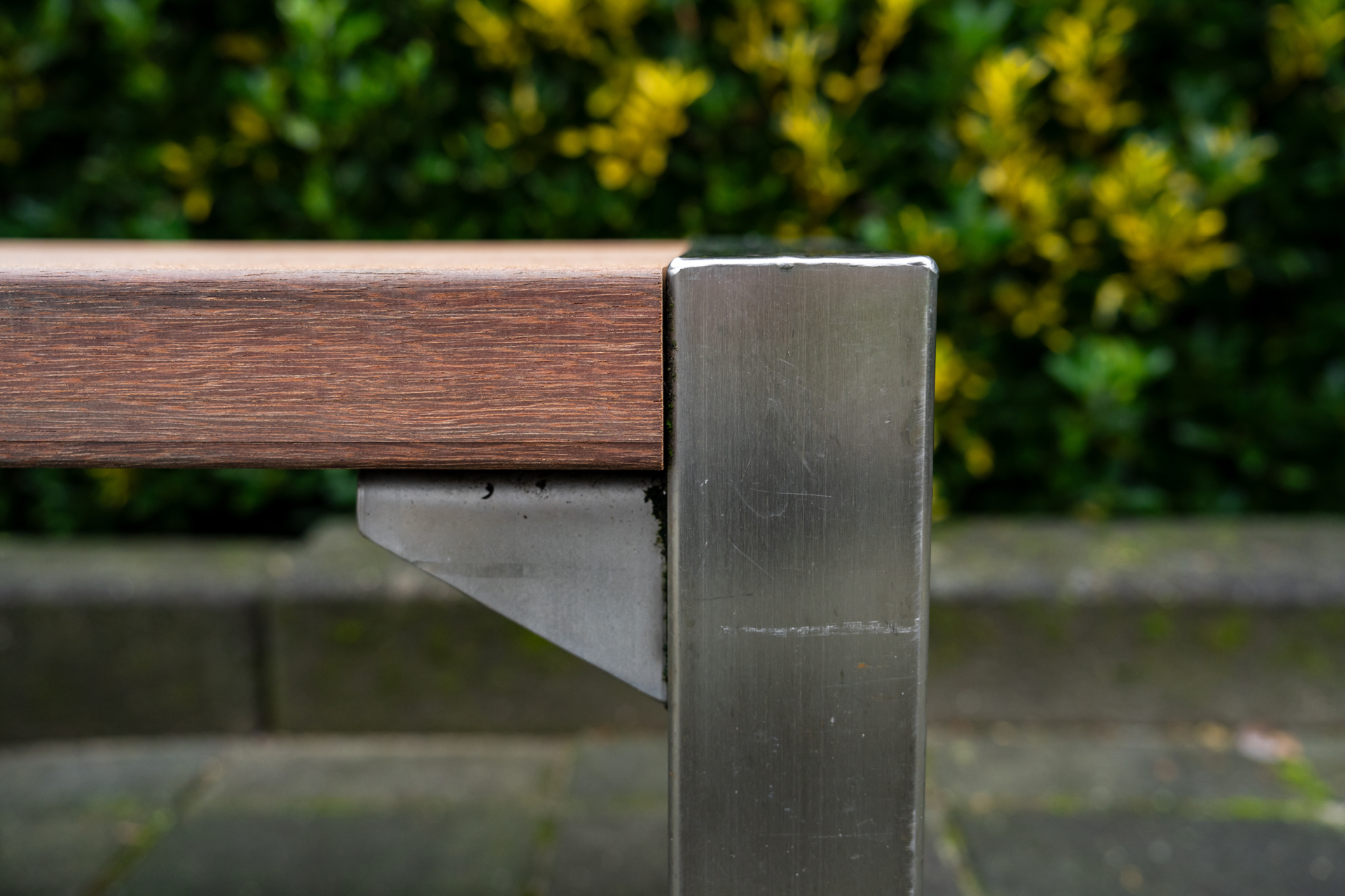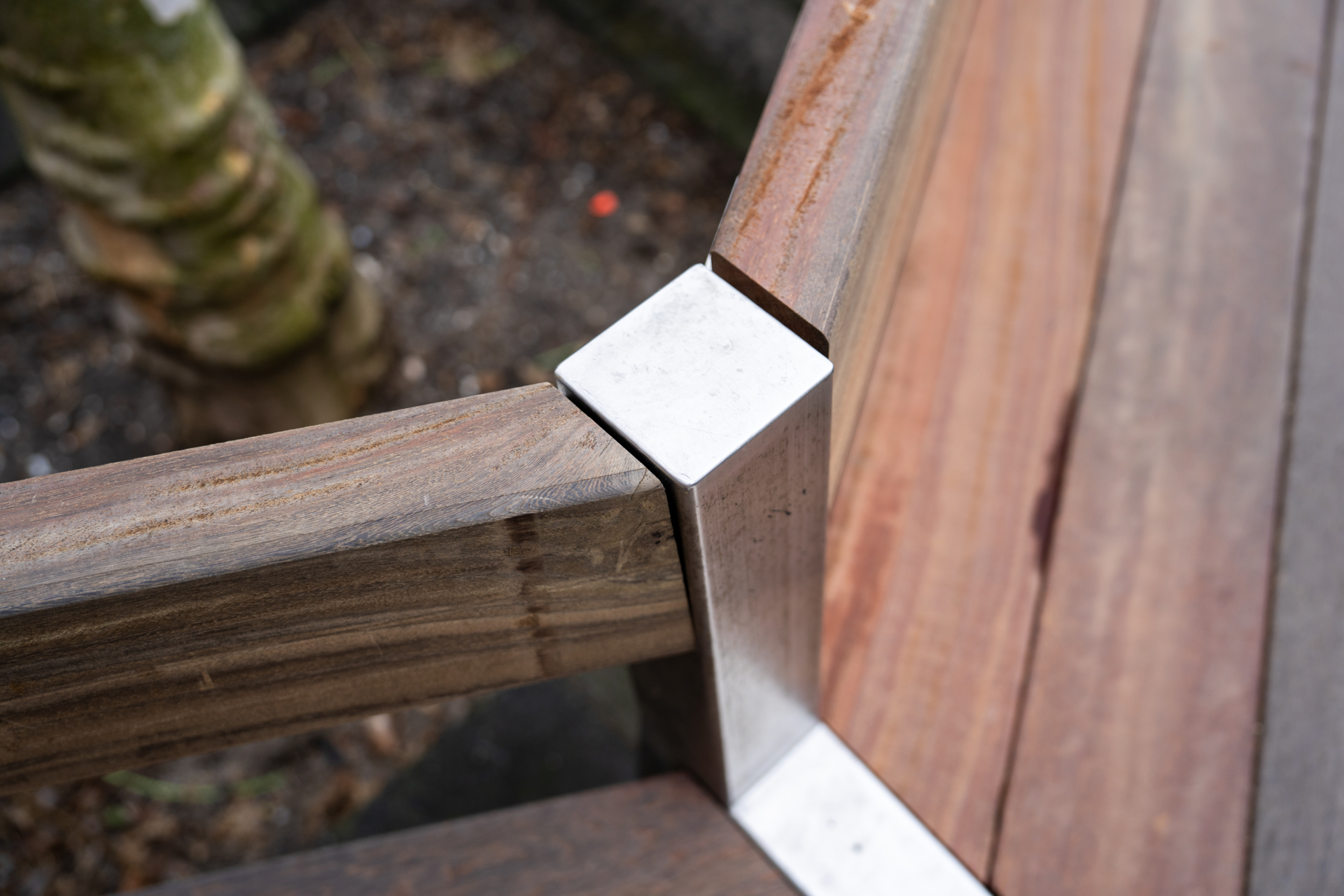 Azobé hout is zwaar en hard. Dat maakt dat deze houtsoort goed voor deze toepassing kan worden gebruikt. Door eigenschappen zoals een hoge slijtvastheid zullen de bankjes de streken van enkele ontdeugende leerlingen goed kunnen weerstaan. Belangrijk voor een langdurig mooi resultaat!
