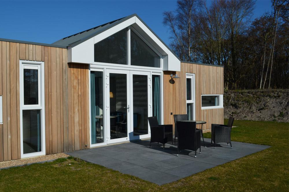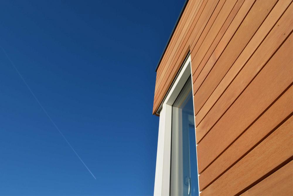 Voor de gevelbekleding van de vakantiehuizen is gekozen voor het houtsoort Louro Gamela. Vers gezaagd heeft het kernhout van Louro Gamela een zalmkleurige tint die tijdens het drogen licht roodbruin tot soms iets geelachtig roodbruin wordt. Om een mooi lijnenspel te creëren, zijn de planken zowel horizontaal als verticaal op de gevels van de chalets gemonteerd. Het effect wordt versterkt door de verschillende breedtes van de planken. Op de camping kunnen vakantiegangers nu genieten van prachtige chalets van FSC® Louro Gamela tropisch hardhout. Mooi én duurzaam!