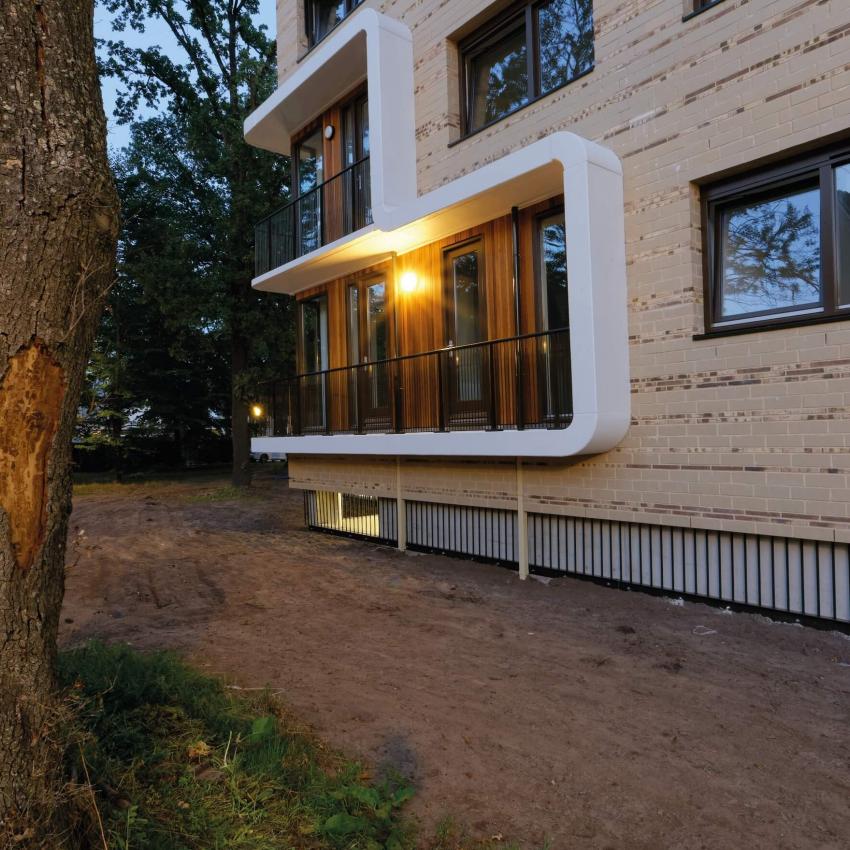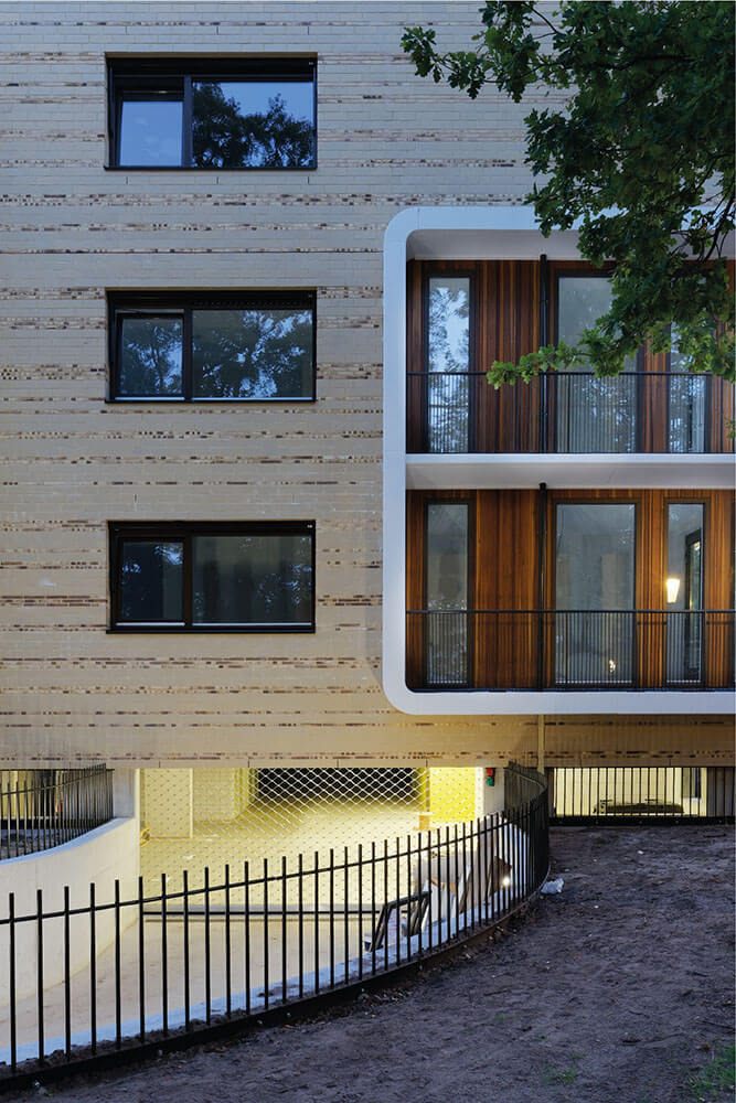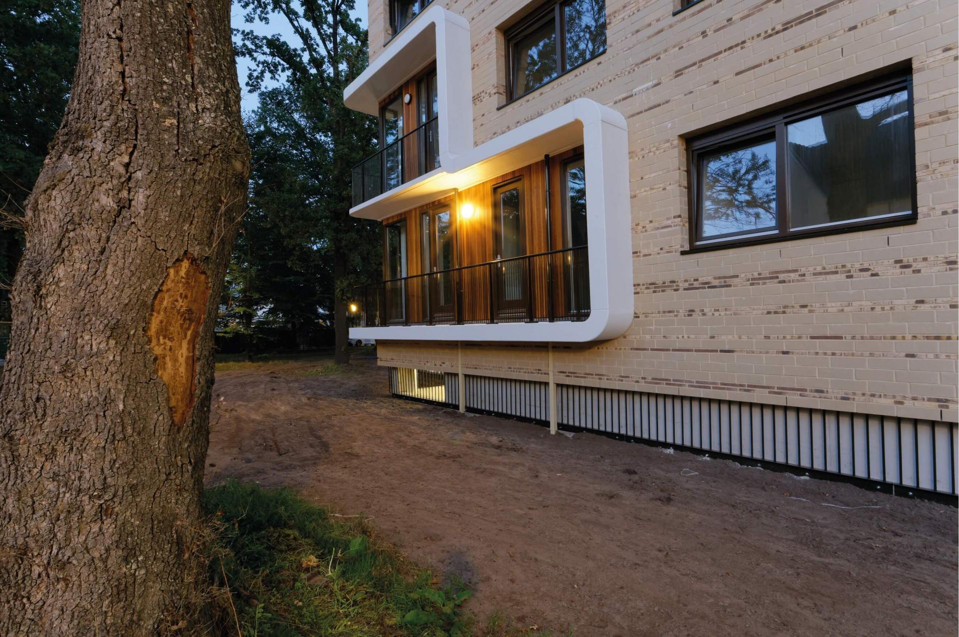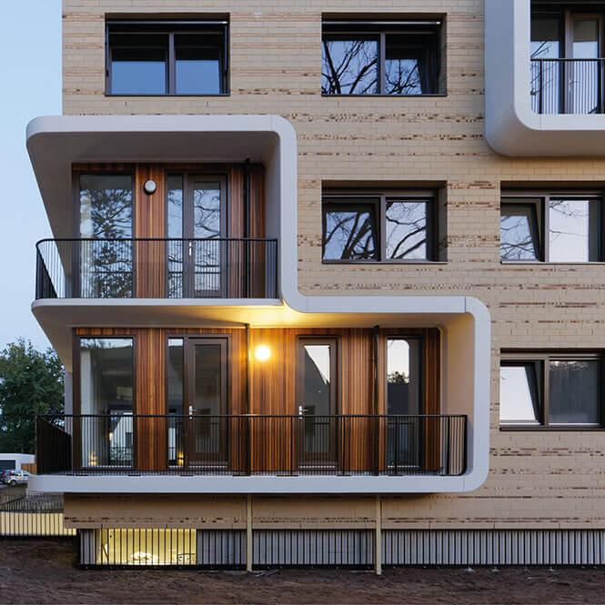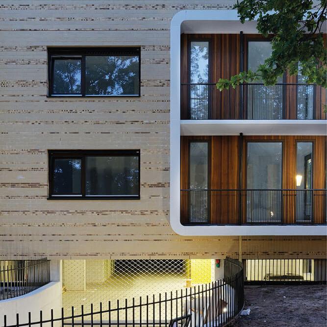 Aan de gevels is voor de verticale delen de houtsoort Louro Preto met FSC® label bevestigd. Deze houtsoort is uitermate geschikt voor gevelbekleidingen en is geliefd bij architecten. Het gebruik van Louro preto met FSC® keurmerk draagt bij aan de instandhouding van het duurzaam bosbeheer in de tropen. Daarnaast is hout een CO2 neutraal bouwmateriaal en gaat het lang mee bij een vakkundige detaillering en verwerking. Daarmee is het bouwen met Louro preto een goede en verantwoorde keuze.