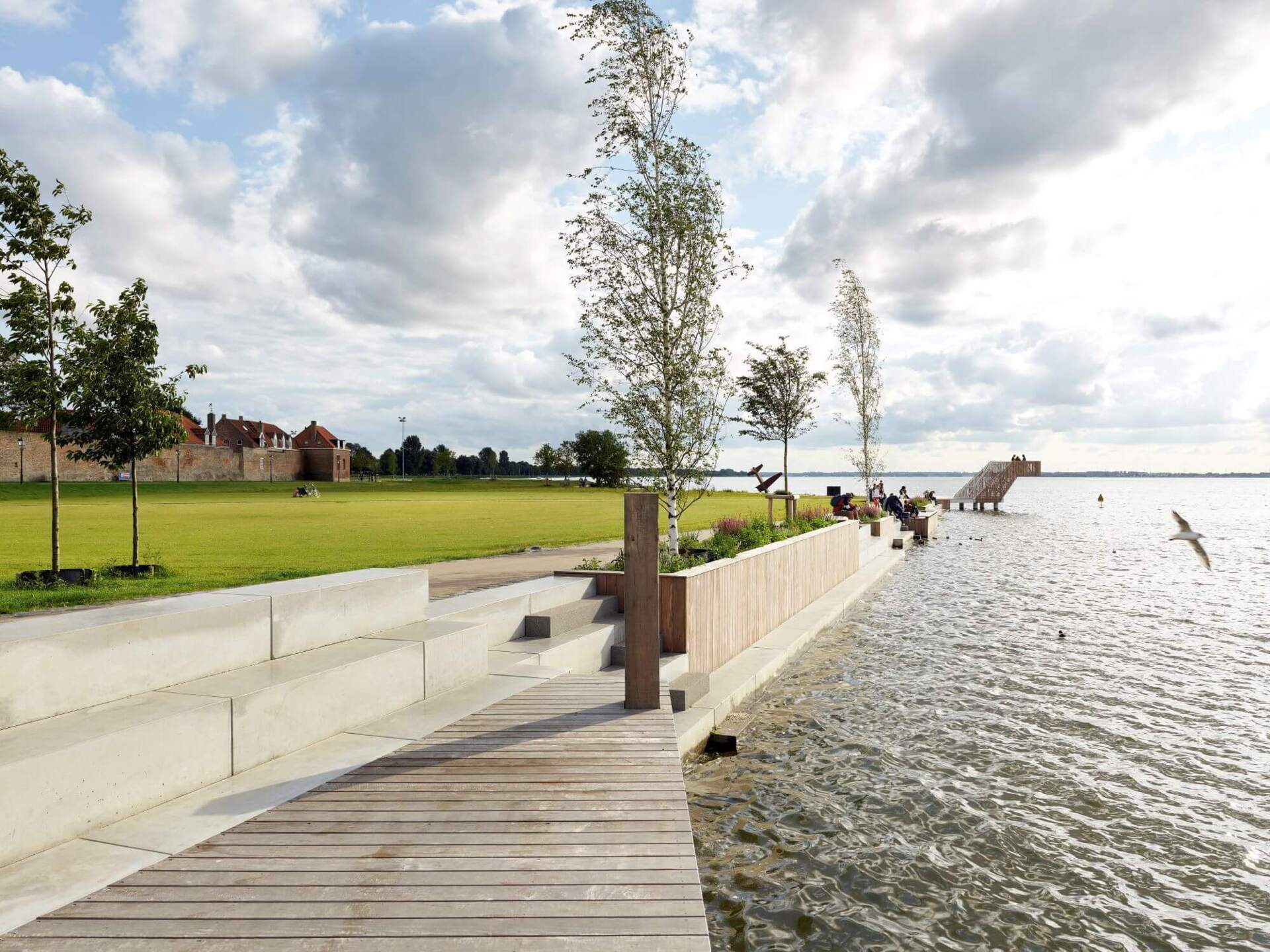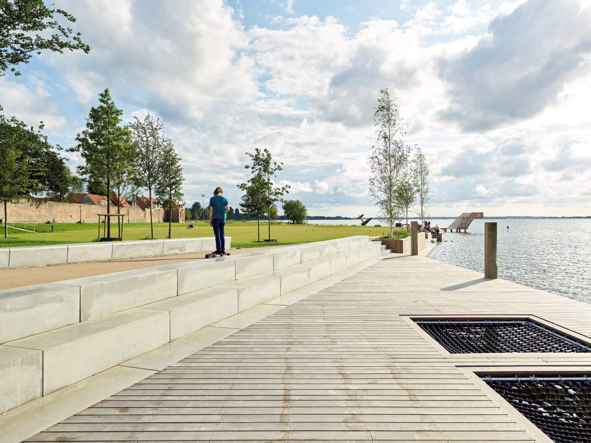 De Wijde Wellen in Harderwijk is meer dan een wandelflaneerpad. Je kunt er ontspannen en genieten van allerlei uitzichtmogelijkheden op het water, scheepsverkeer en watervogels en op de omgeving om de natuur en historie in je op te nemen. Van den Berg Hardhout leverde verschillende (tropische) hardhoutsoorten voor dit veelzijdige project.
