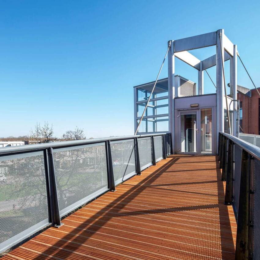 Van den Berg Hardhout kreeg de vraag om mee te denken bij het vervangen van de houten vlonderdelen van een galerij in Tilburg. Wel een paar uitdagingen: veel dezelfde lengtes en een afgebakend budget. Gelukkig betrof het een standaard kopmaat (ruw 52x155 mm). Dit maakte het een stuk eenvoudiger om een grote partij vlonderplanken in dezelfde lengte te bemachtigen.