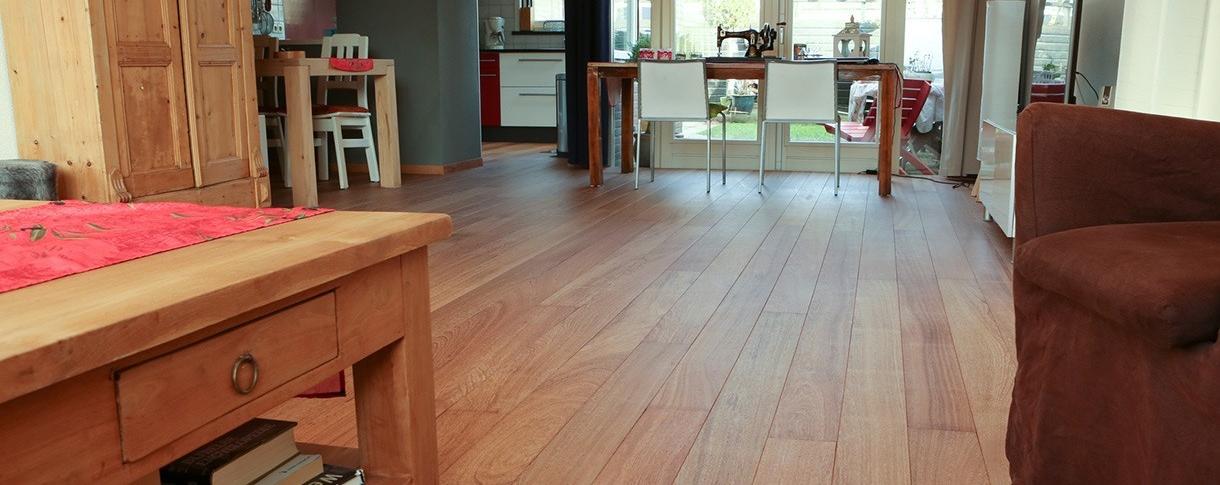 Warme houten vloer gemaakt van Sapupira hardhout met fsc keurmerk
