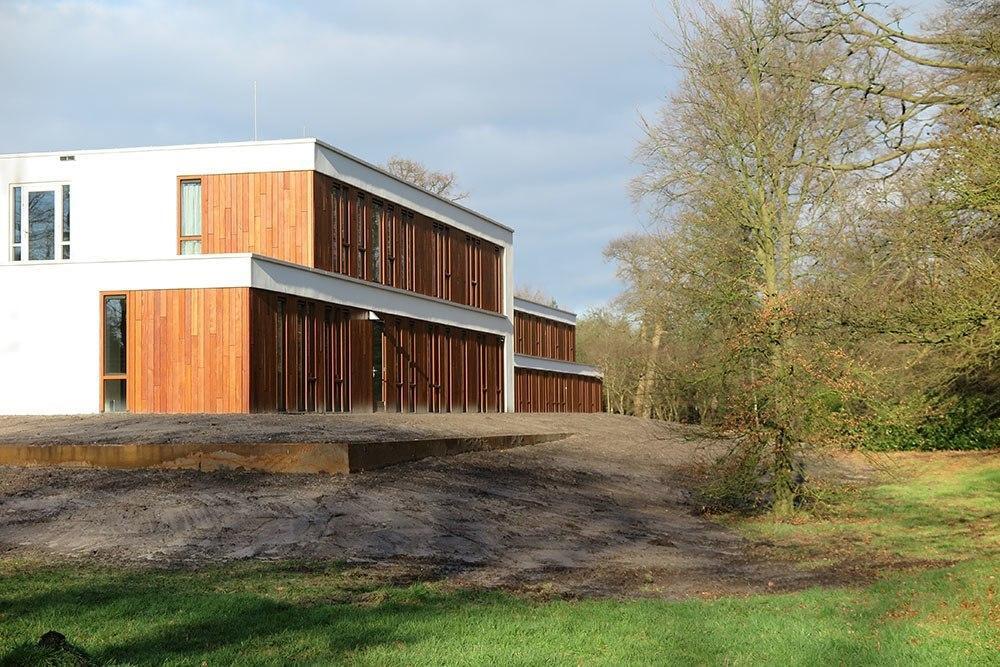 Bij het ontwerp (door van Egmond architecten) van het complex is rekening gehouden met het landschap. Het exterieur van Nieuw Hydepark past goed bij de bosrijke omgeving. Daarnaast zijn er veel ramen en doorkijkjes gerealiseerd zodat mensen bijna vanuit elke ruimte een prachtig uitzicht hebben. Voor de gevelbekleding heeft Van den Berg Hardhout gekozen voor Mandioqueira / Sucupira amarela. Een tropische hardhoutsoort uit Zuid Amerika dat geliefd is om zijn mooie, roze rode kleur. In sommige gevallen zijn groeiringen zichtbaar. Het hout is relatief duurzaam, met duurzaamheidsklasse 2-3.