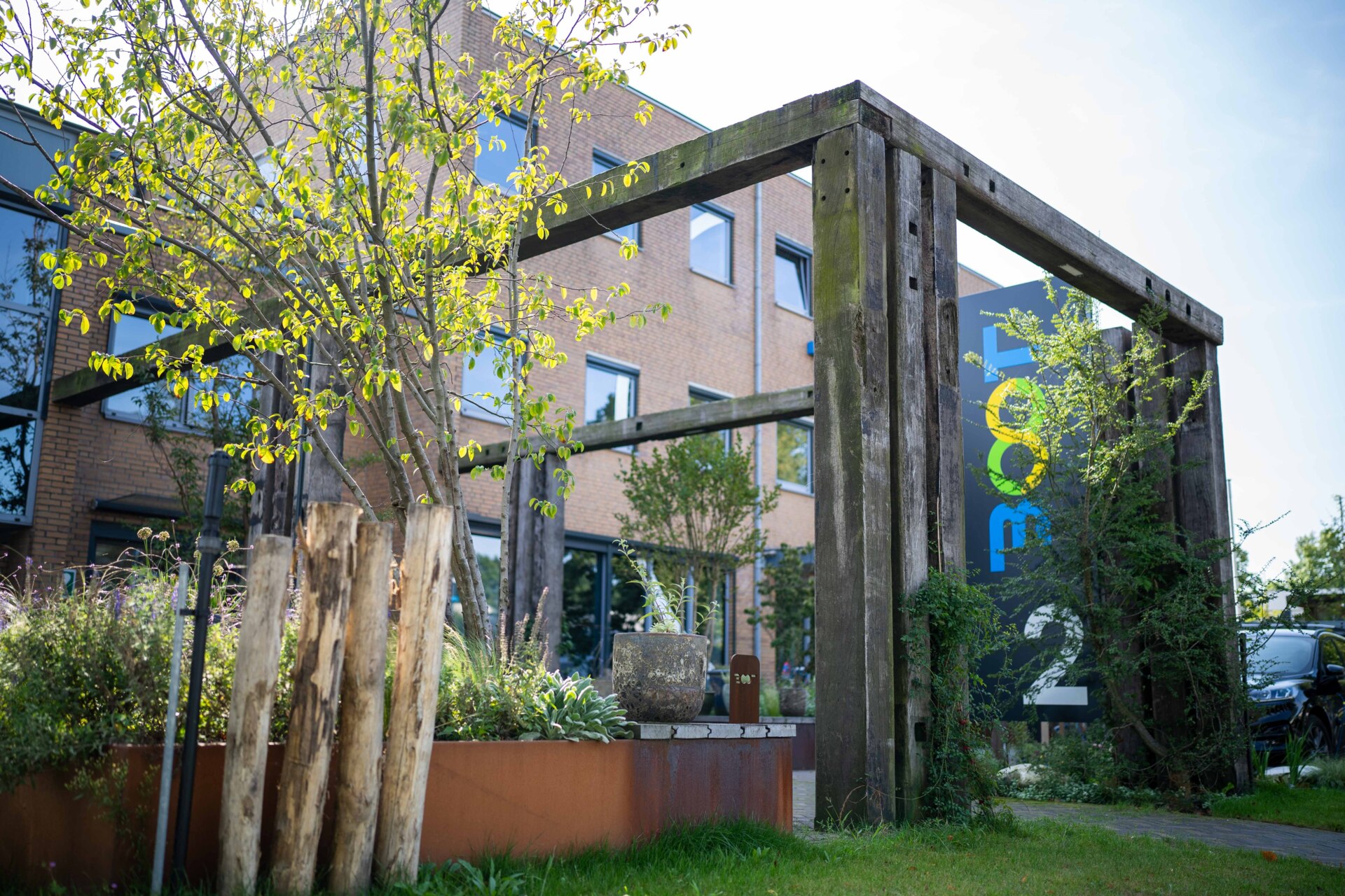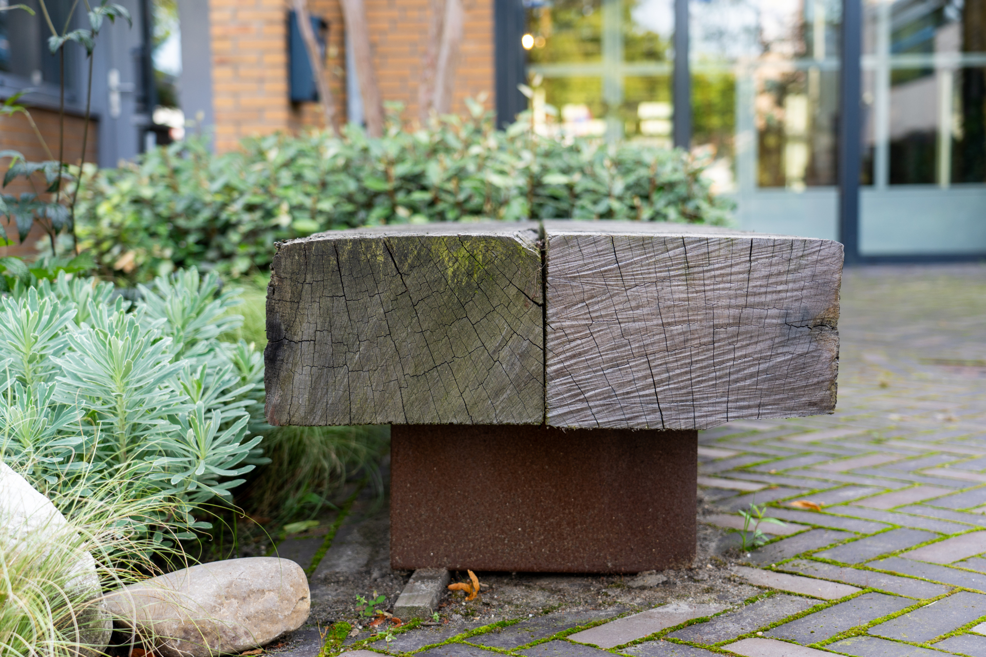 Naast een Pergola zijn er reststukken gebruikt om bankjes van te maken. Daar kunnen de werknemers lekker lunchen of van het weer genieten. Bij elkaar een mooie aanwinst dus!