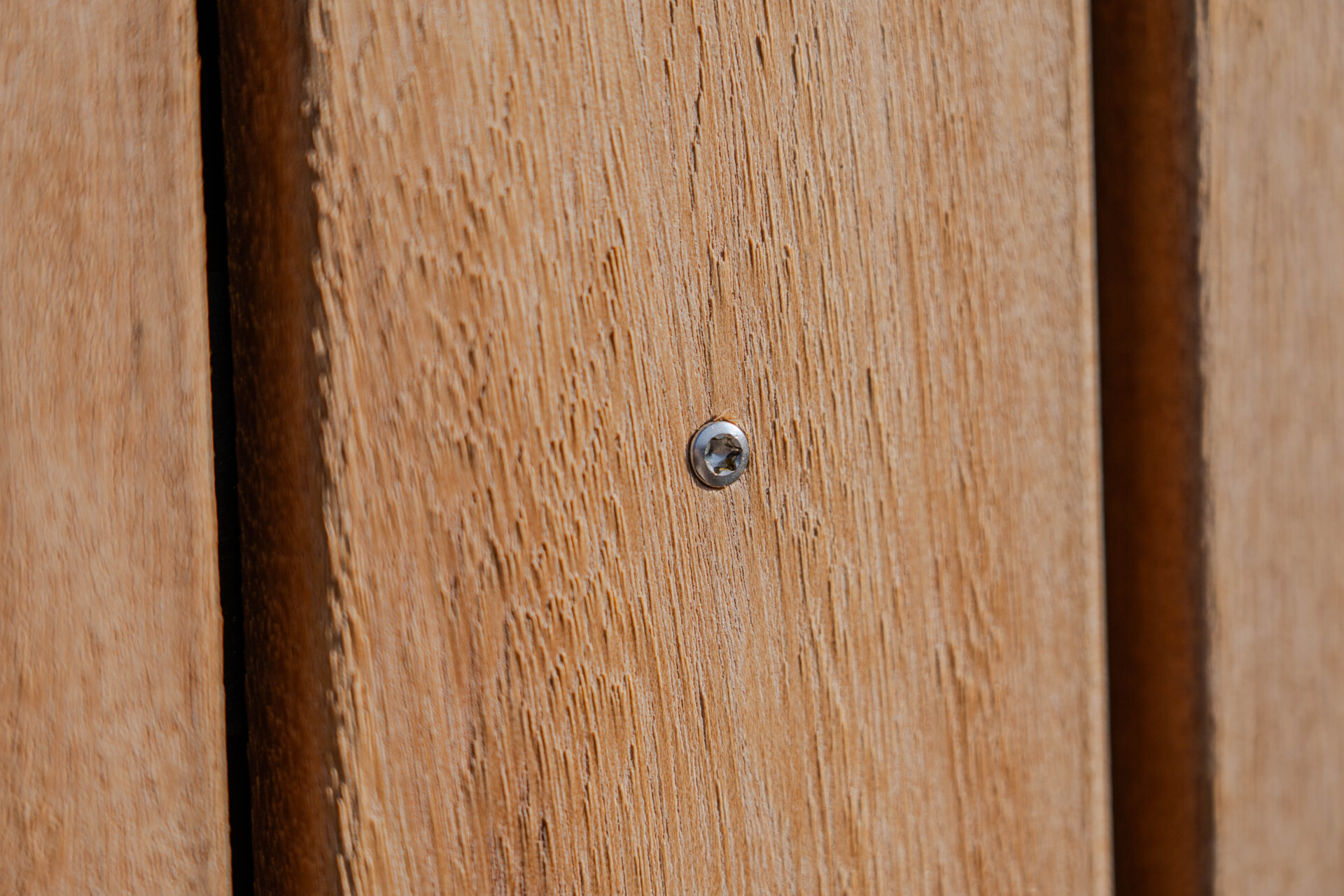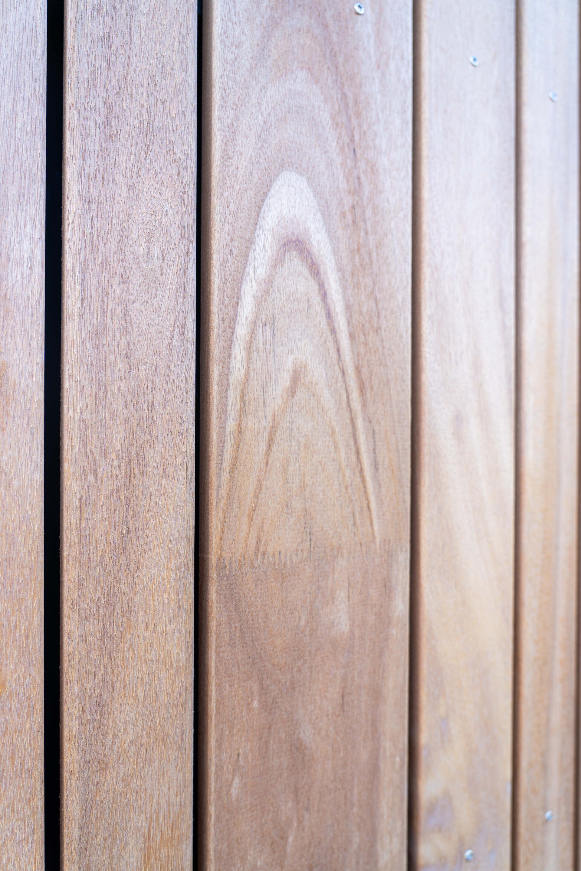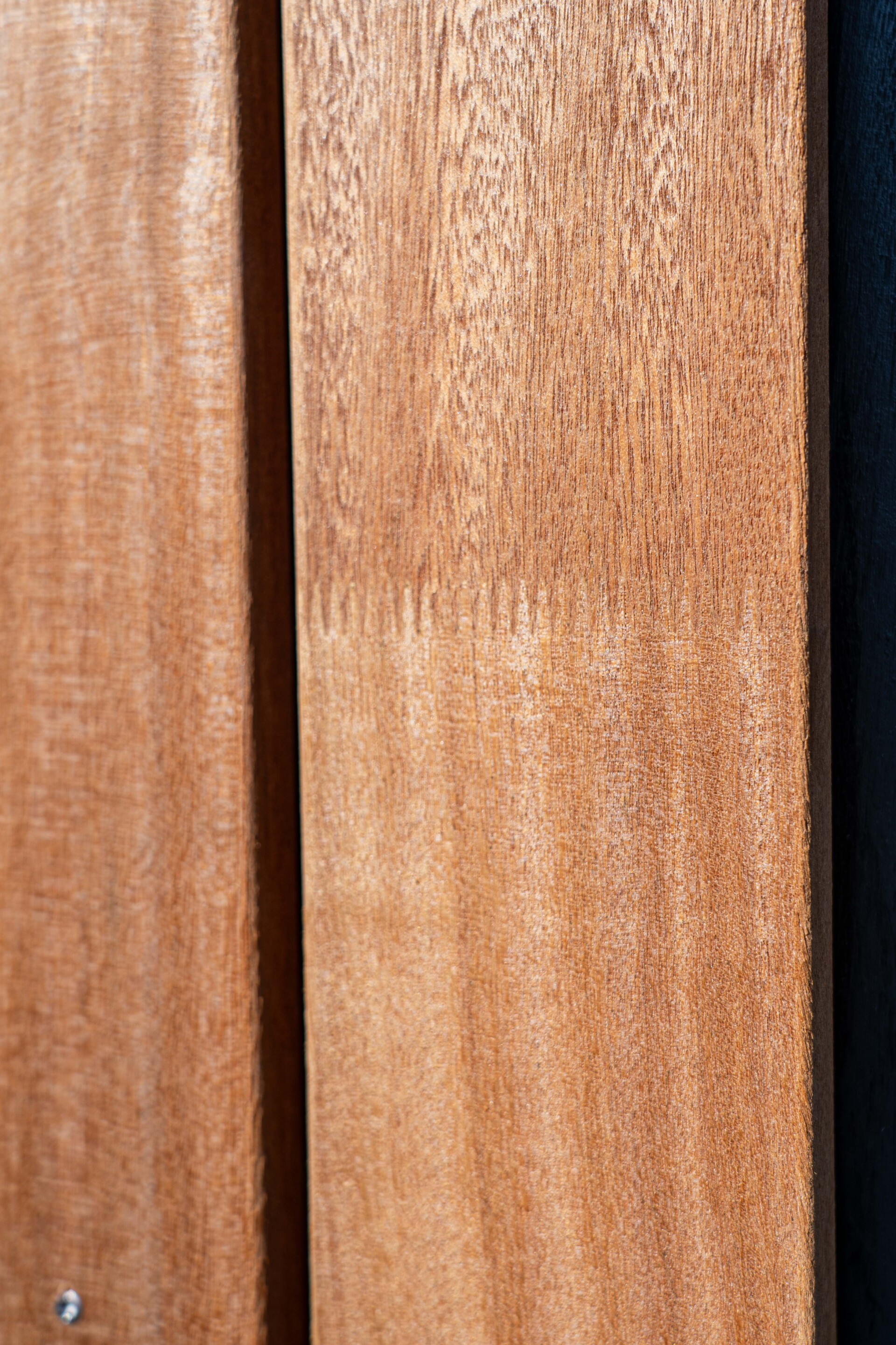 Het Louro gamela dat in dit project is gebruikt is gevingerlast. Het voordeel van vingerlassen is dat korte stukken hout samen een langere plank maken waardoor het veelzijdig inzetbaar is, bijvoorbeeld als gevelbekleding. Daarnaast zorgt het ook dat dit hout een hoogwaardige bestemming krijgt, in plaats van dat het in de kachel belandt. Echt duurzaam dus.