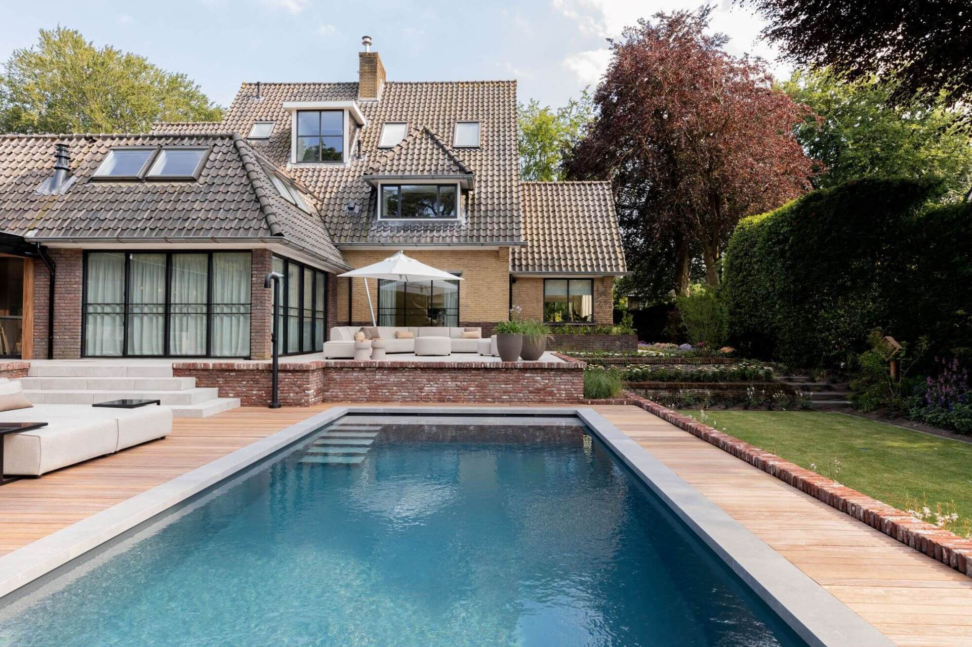 Een luxe villatuin is natuurlijk niet compleet zonder zwembad. Voor de afwerking ervan zocht Lodewijk een praktische oplossing met een luxe uitstraling. Niet iedere afwerking is geschikt voor een zwembad. Zo wordt het populaire Blauwsteen snel glad. Bovendien kunnen Blauwsteen tegels erg warm worden na langdurige blootstelling aan zon.