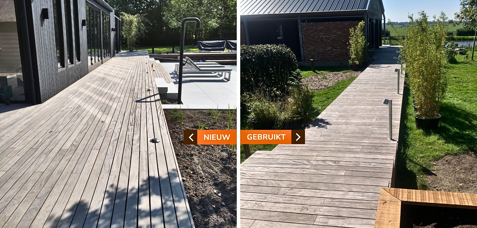 Het hergebruiken van tropisch hardhout, zoals Massaranduba, Basralocus en Groenhart kan een uitstekende keuze zijn: